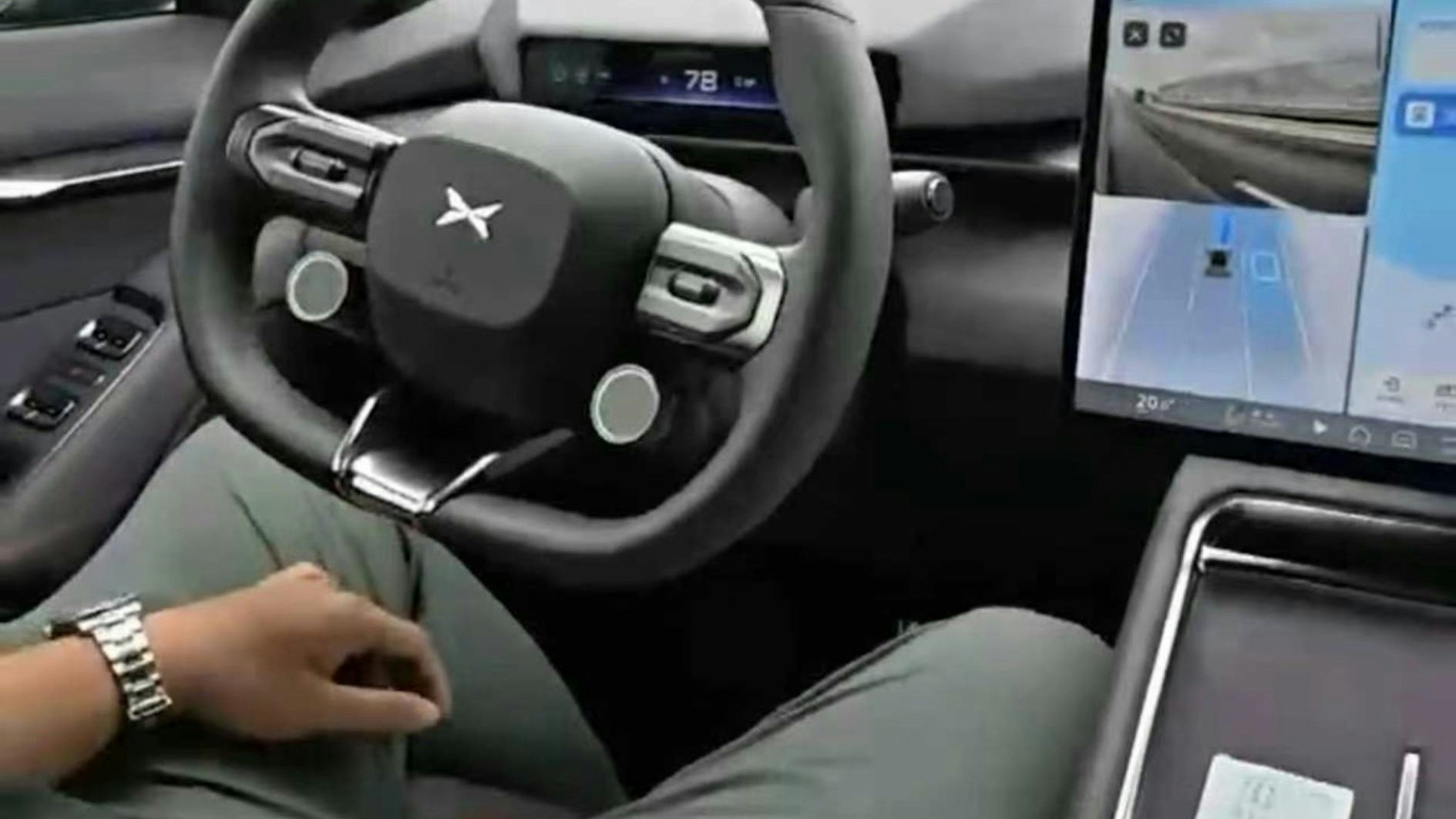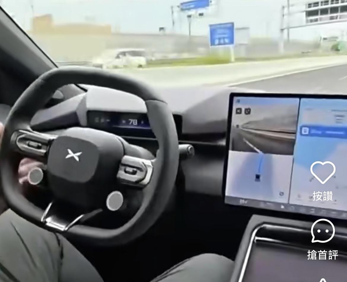 小紅書上流傳一條影片,一名經粵車南下自駕來港的内地「小鵬P7」車主,在駕駛時使用車輛的智能駕駛系統,期間一度雙手離軚。(小紅書截圖)% b( @( U6 p, y