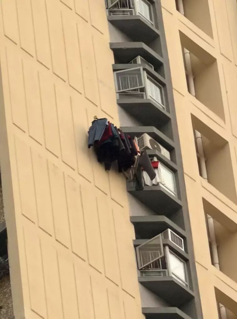 ' G1 [+ w0 V- a雖然涉事單位另一側窗戶外設有晾衣架,但住戶仍選擇以高難度方式晾衫。影片可見衣物隨風擺動,危險情景令拍攝者驚呼「好神奇啊,究竟點解會曬到咁樣?」$ u: }7 L9 D2 N6 j