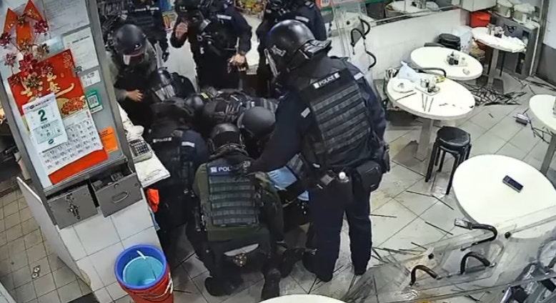 此時,另一批持盾牌警員則店舖另一側入內,慢慢靠近劉女後方,劉女仍然與前方警員糾纏未有發現,最終前後兩批警員用盾牌將她推至角落後撳地制服,共3間劉女仍然不斷大叫,情緒激動,最終被大批警員抬出店外,影片就此結束。