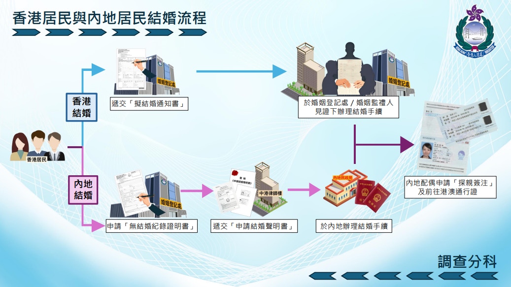 7 b a* X3 ?6 B. C. Stvb now,tvbnow,bttvb香港居民與內地居民結婚流程。(入境處提供圖片)