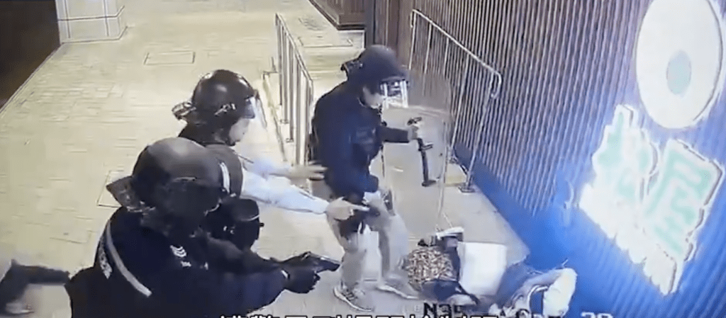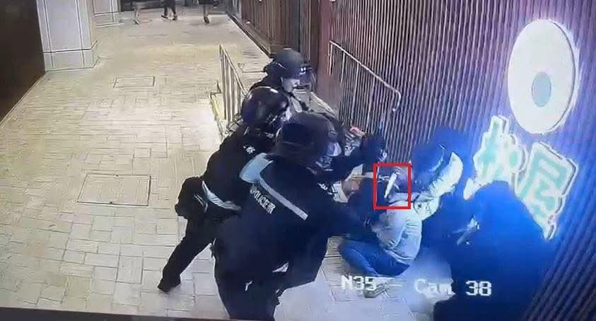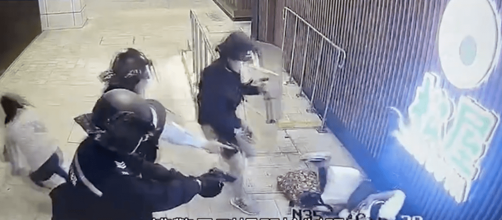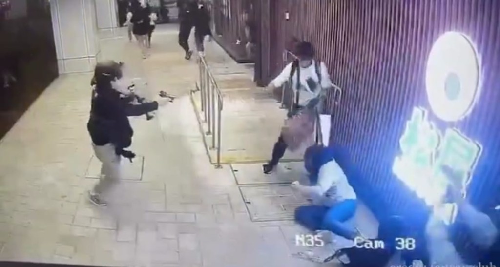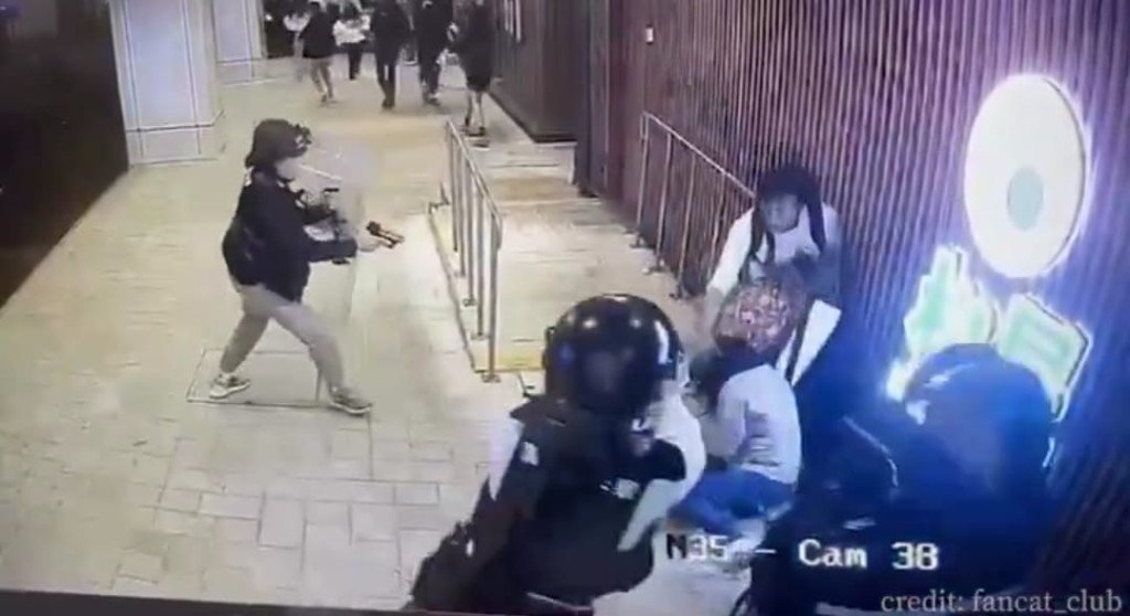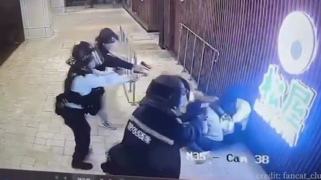 現場閉路電視影片顯示,疑兇在便利店外撲向兩名女途人,他抓住其中一名灰衣女子的斜孭袋肩帶不放,而後者懷疑受驚,只能跪坐在地。由於疑犯一時間未能完全控制人質,3名警員一同趨前,槍聲連響兩聲後,疑犯懷疑中彈倒地。其中一名警員趁機將灰衣女人質扯離現場,另一名女人質隨之逃去。公仔箱論壇' ?" `4 a j) s7 N; l
