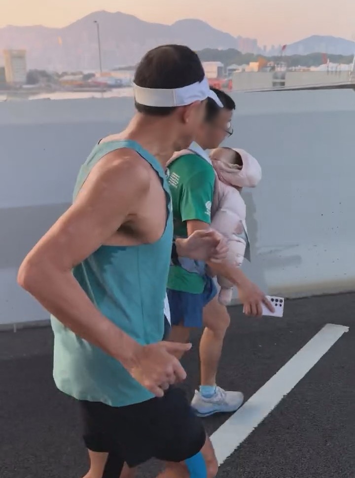 1 n. I Z6 e V0 x, t渣打馬拉松2026前日(18日)舉行,全馬(42.2公里)跑手出現一名孭着嬰兒跑到眼鏡「半甩」的男子,惹來網民一面倒負評。