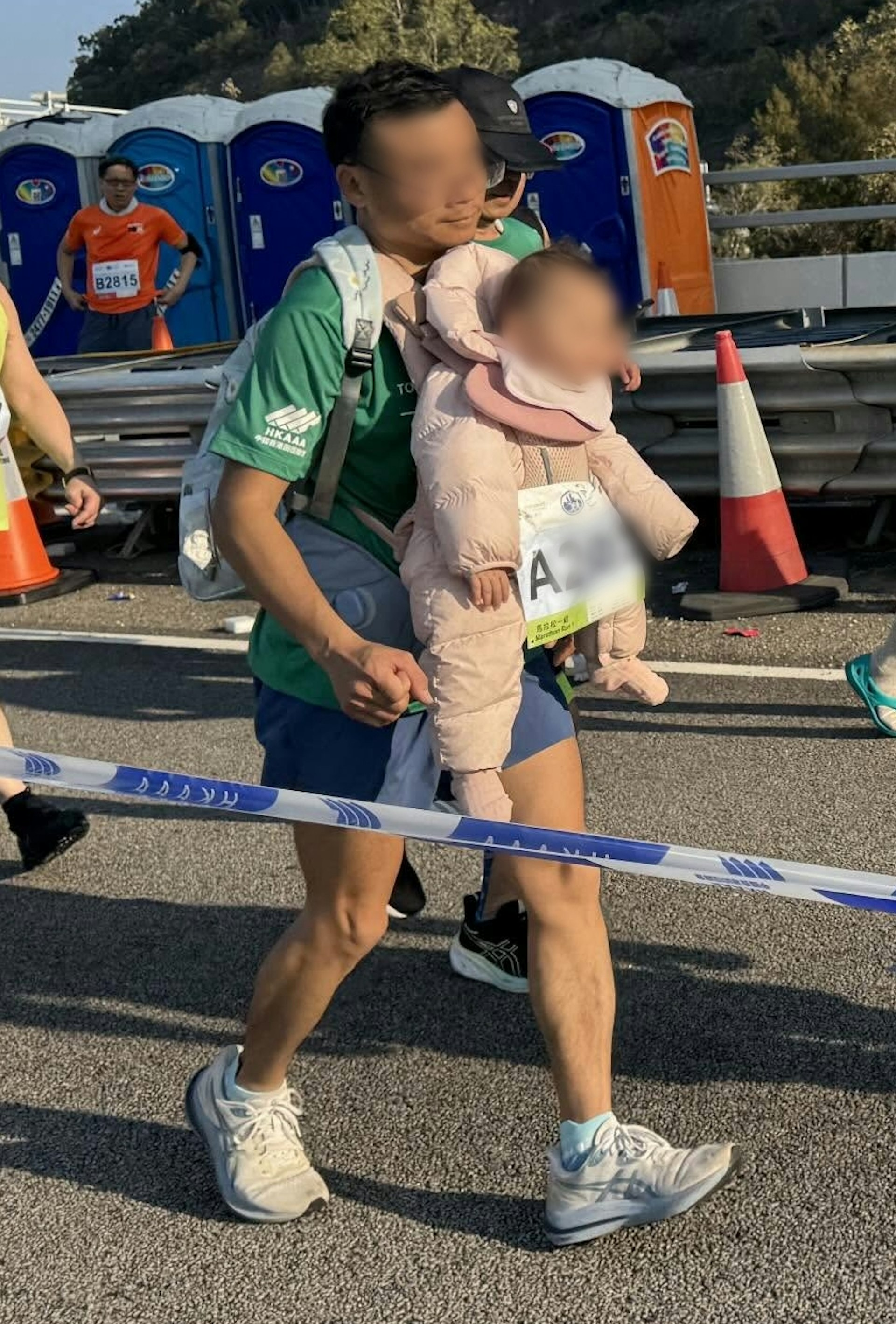* i2 z( h2 k/ L1 z ntvb now,tvbnow,bttvb渣打馬拉松2026,一名男跑手孭嬰兒參加全馬比賽,跑至眼鏡「半甩」,而他將號碼布扣在嬰兒的防風被上。(threads@tam2gogo)9 Z: _* K$ `0 G; ?