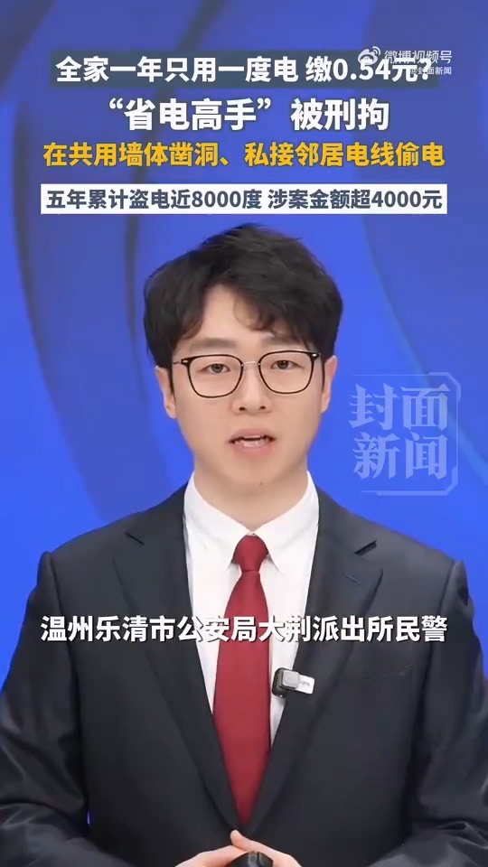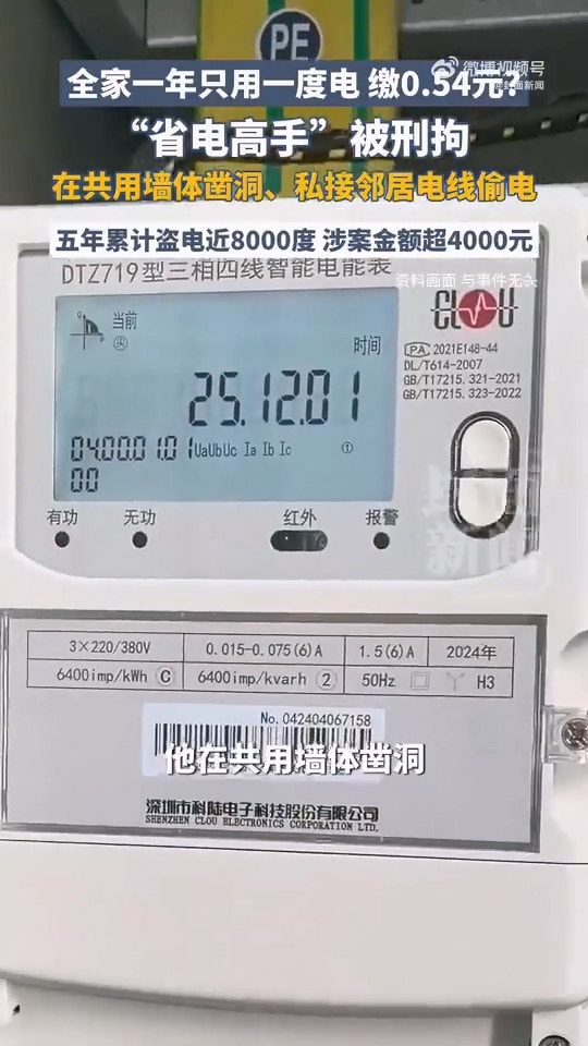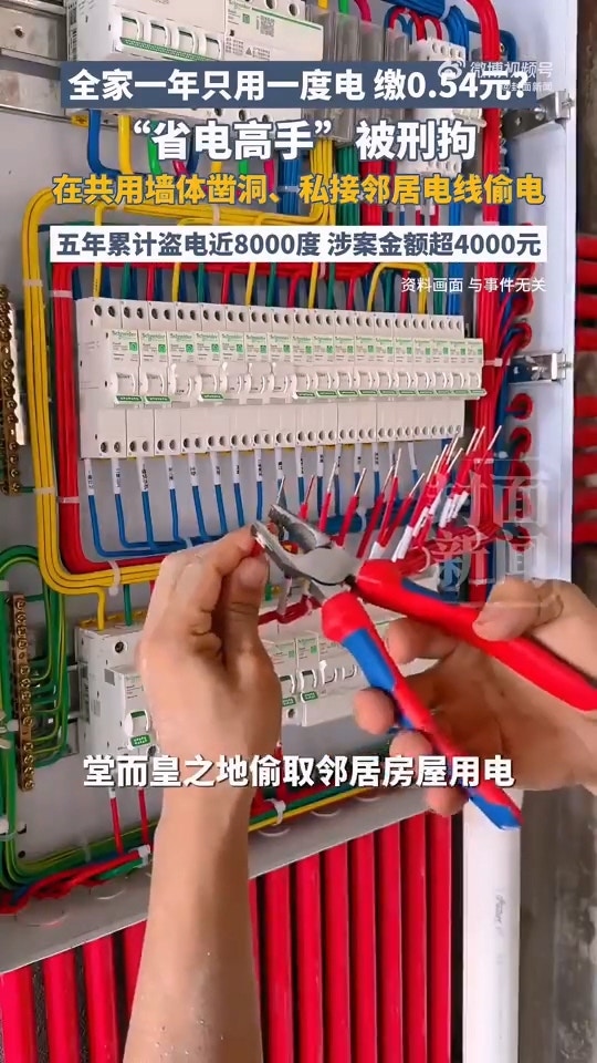 8 w* q# B3 _* | gtvb now,tvbnow,bttvb浙江省溫州樂清市近日破獲1起長期竊電案件,一名男子因為偷接鄰居家的電,所以全家整年用電量僅1度。(《紅星新聞》圖片)