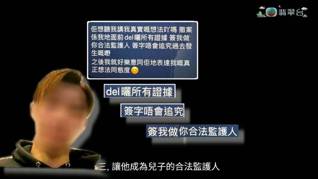 陷入絕望的陳媽媽,一度考慮妥協:「我有同阿仔或者呢個教練講,我而家最想要做嘅唔係捉你,亦都唔係想要告到你要坐監,我只係想要阿仔好,真係想個仔好。」她表示若二人是真愛,為了兒子好願意成全他們。怎料J教練得寸進尺,竟開出以下三大離譜條件:「一,毀滅所有證據;二,簽字唔會追究;三,簽字畀佢成為囝囝嘅合法監護人。」TVBNOW 含有熱門話題,最新最快電視,軟體,遊戲,電影,動漫及日常生活及興趣交流等資訊。0 ?! n/ `' A) L" w