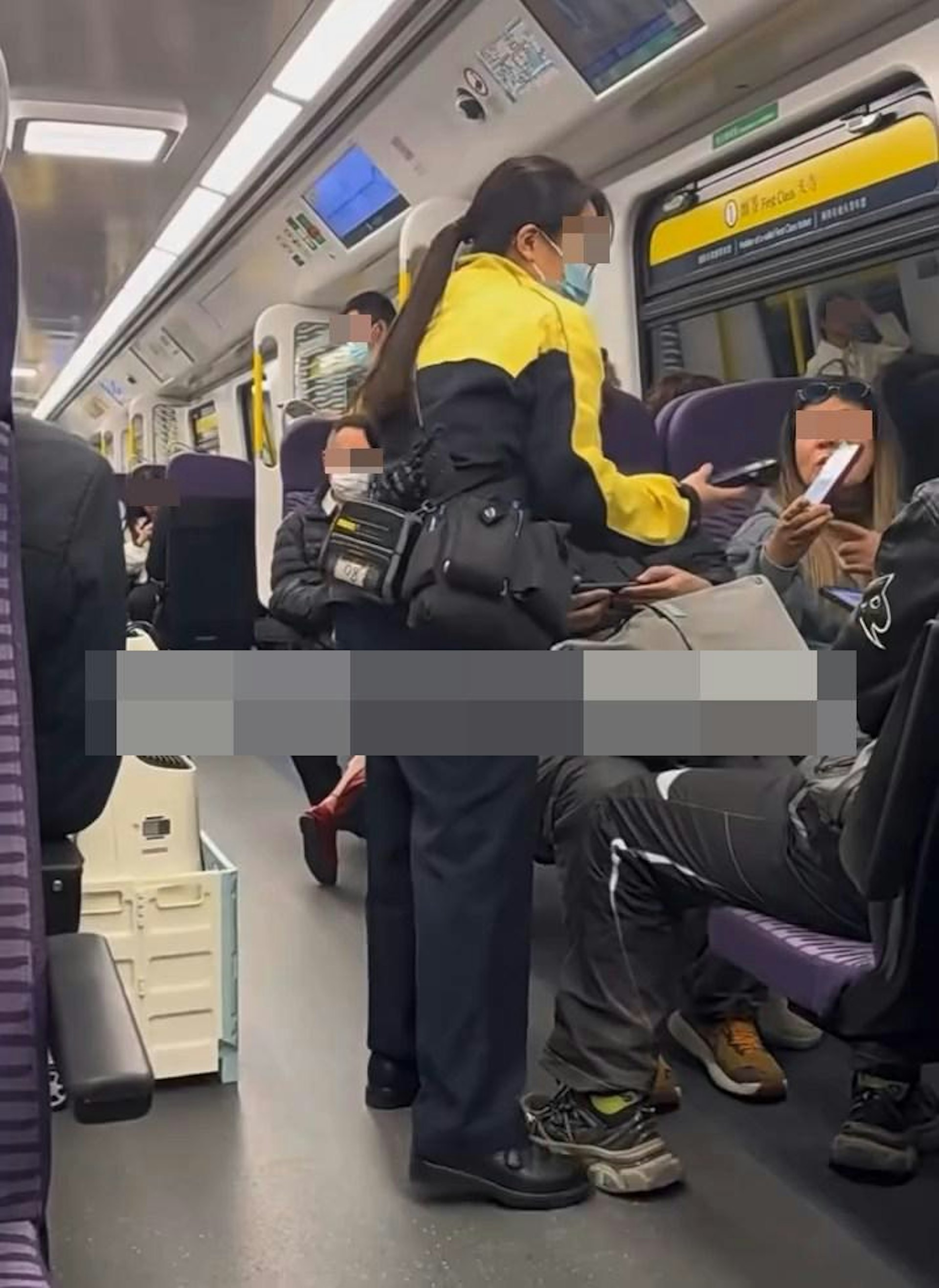 港鐵職員不時查票打擊「逃票」。有網民於2月24日在Facebook群組「車cam L(香港群組)」發布影片,顯示往紅磡的東鐵頭等車廂內,有3名男女乘客沒有付款,被職員查票「斷正」。1 p8 V. z1 E* g0 |