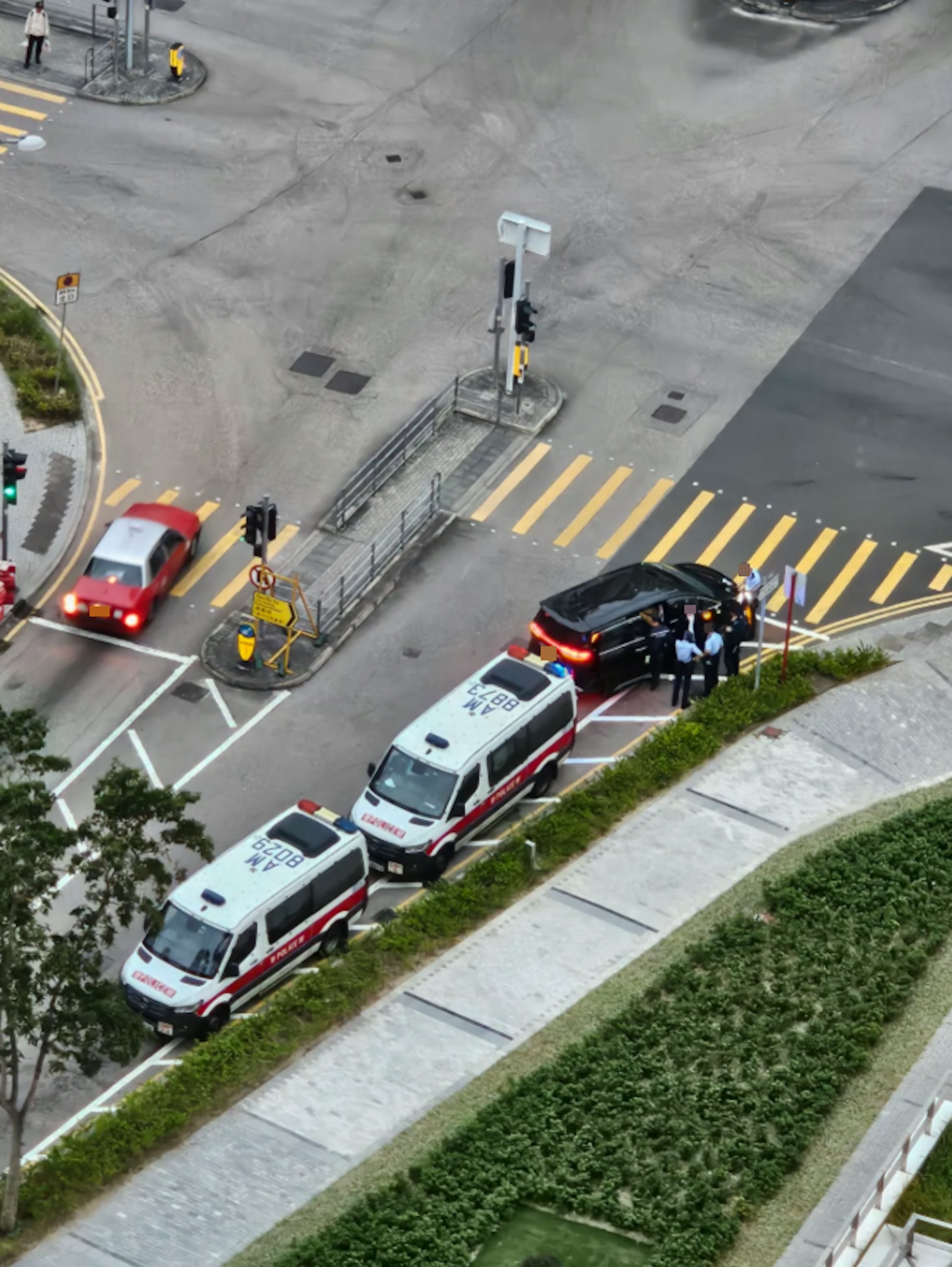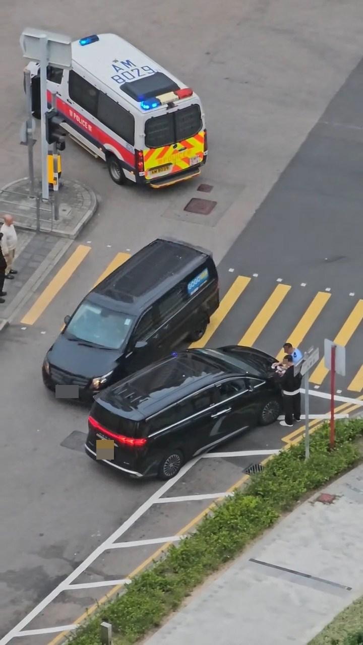 掛有中港牌的黑色7人車停泊在斑馬線旁,不遠處有1部警車停泊。(Threads@reveluv_afterlike_1994)www2.tvboxnow.com* x2 i5 H1 _4 @5 M0 K/ v: c; I