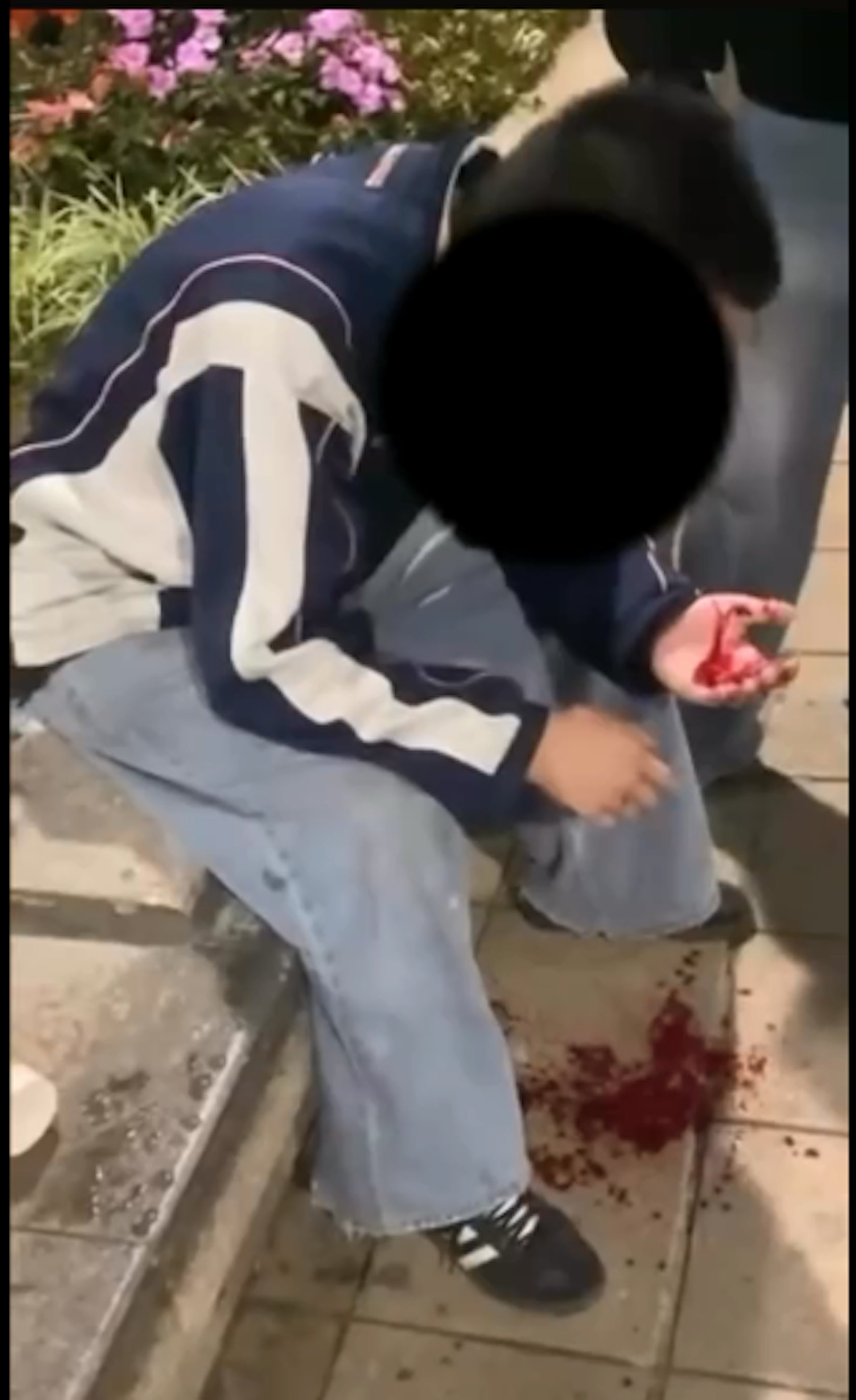 / Q6 s5 n, Q3 \% n3 K$ B公仔箱論壇「關我X事呀?冇人理你呀!」網上流傳的5秒片段可見,一名男子坐在花槽石壆,被數名男子圍住,他低下頭、右手掌披血,地下亦有一灘血迹,狀甚痛苦;施襲者仍然對他推撞、指罵。另一張圖片,則見到事主與另一男子倒在地上,另外有兩名男子圍觀。發帖者向《香港01》表示,事主飲酒期間與人口角捱打;帖文另附上懷疑施襲者的相片。