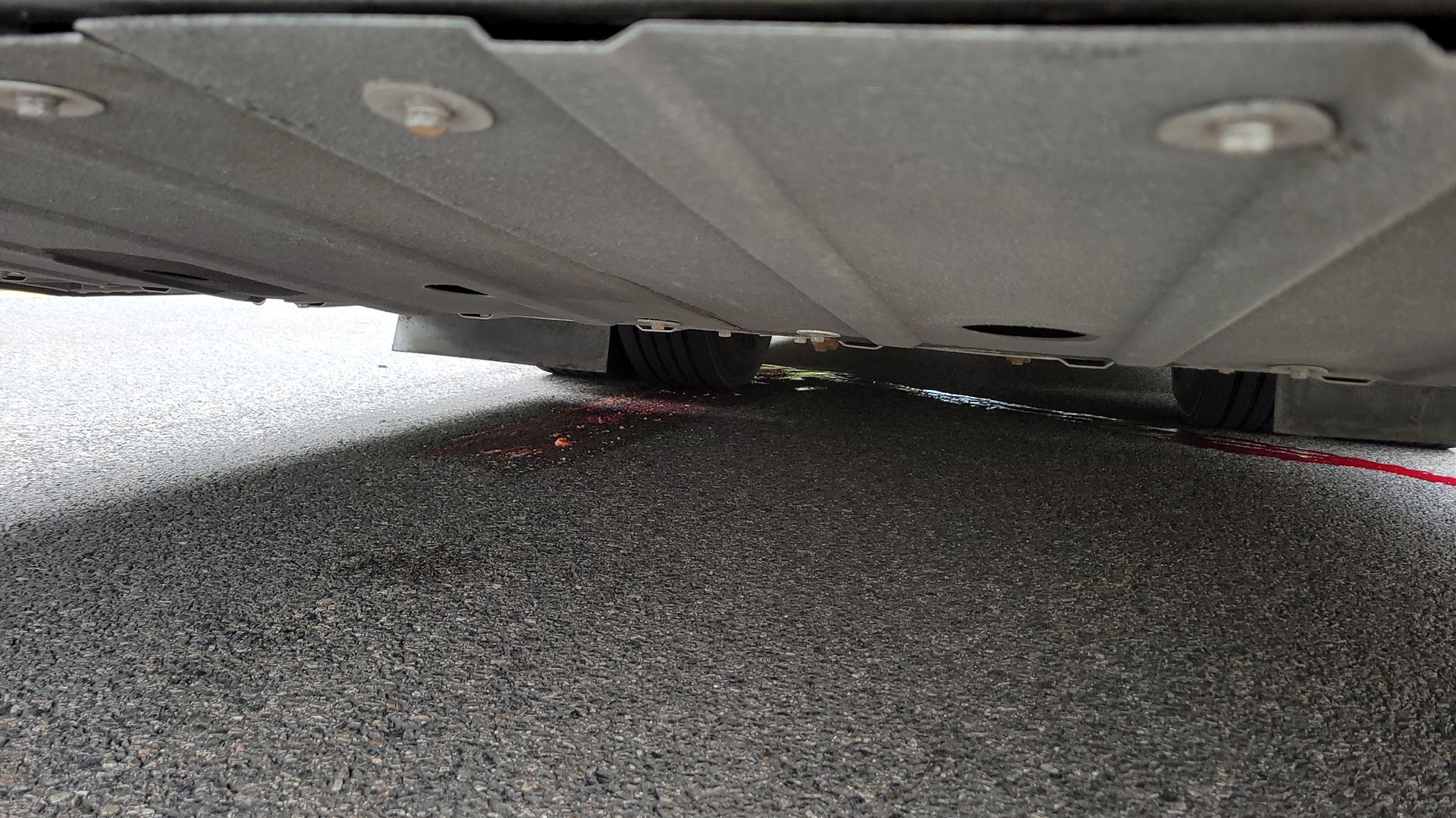 + g! o; ?( h. ?' m9 M6 @ X( t, k旅遊巴車底遺下血跡。(蔡正邦攝)