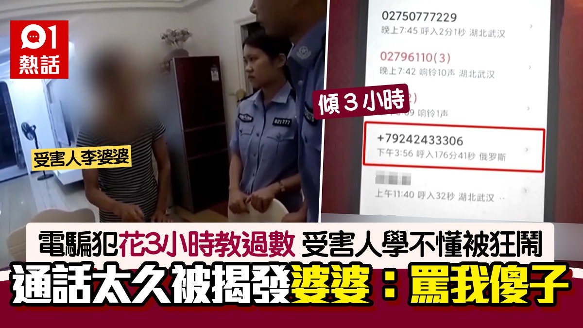 還好婆婆不懂用手機?內地有婆婆日前接到境外詐騙電話,對方冒充公安局人員要求她將錢匯入「安全戶口」調查。雖然婆婆很快上當,但因為她說方言又不懂用手機,騙徒花了3小時教她用微信轉賬,婆婆仍然學不會。由於通話時間太長,引起當地反詐騙部門關注,警方最終上門制止事件。婆婆大呻騙徒不停鬧她笨、態度囂張,又不准收線害她沒時間煮飯,最終她向警方承諾不會再接境外來電。