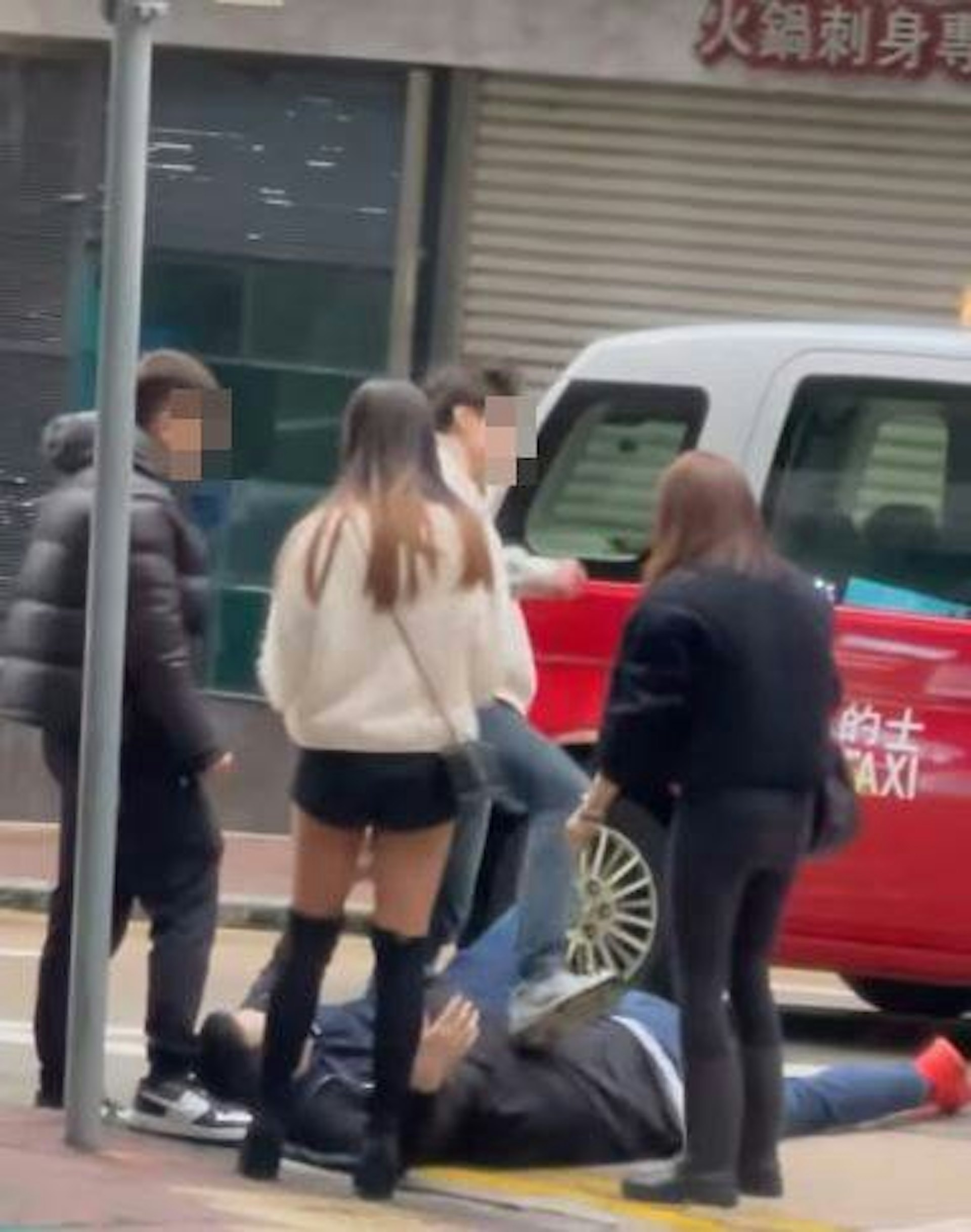 # C. ]/ Q4 U4 e公仔箱論壇今日(7日)上午7時半左右,警方接報多名男女在尖沙咀松山道一間酒吧外打架。警員到場拘捕3男1女,初步調查顯示有人襲擊一名的士司機。事件中一部的士損毀,車CAM被扯爛丟出地面,車內倒後鏡甩脫,司機受傷送往伊利沙伯醫院治理。施襲過程被途人拍下及放上網,可見的士司機碌地熊抱另一名男子拒放手,男子的同行友人則狂踩背扯髮施襲,意圖令司機放手。tvb now,tvbnow,bttvb2 n; V2 @' R4 z2 r9 u6 l n