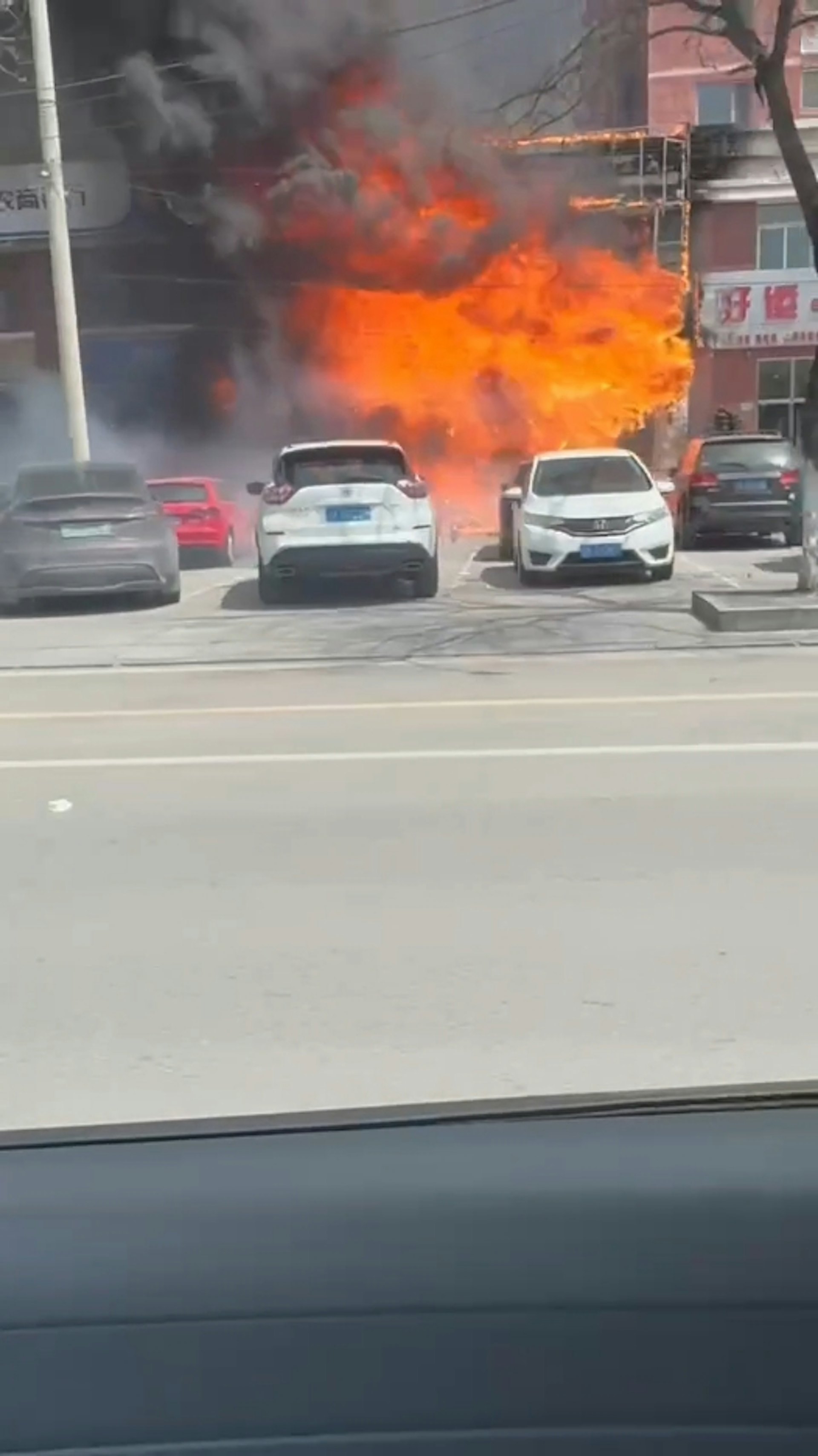 $ A; s/ _( U) P" t# T6 z2 C0 g公仔箱論壇目擊者回憶,他看到剛著火時,飯店廚房的人先跑出來嘗試滅火未果,「他們自己拿滅火器就滅火,滅不了,風太大火就起來了。」據介紹,起火飯店隔壁的銀行牌匾也被燒著,還有停放在外面的電動車也被燒著。+ E# U1 I+ M% `0 F; n# K+ ?