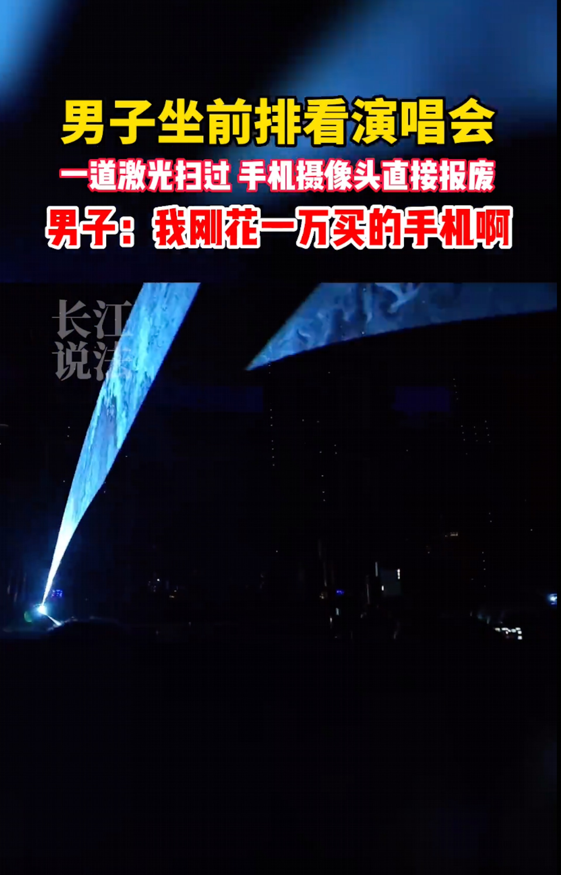 近日內地媒體《長江說法》轉載一段影片,片中男子舉機拍攝演唱會開場,但只見畫面突然一閃,影片不單明顯變暗,在畫面更出現橫、豎兩條不會消失的白線。公仔箱論壇# [3 U# g! X# S7 |+ Q& g* \+ `* Q
