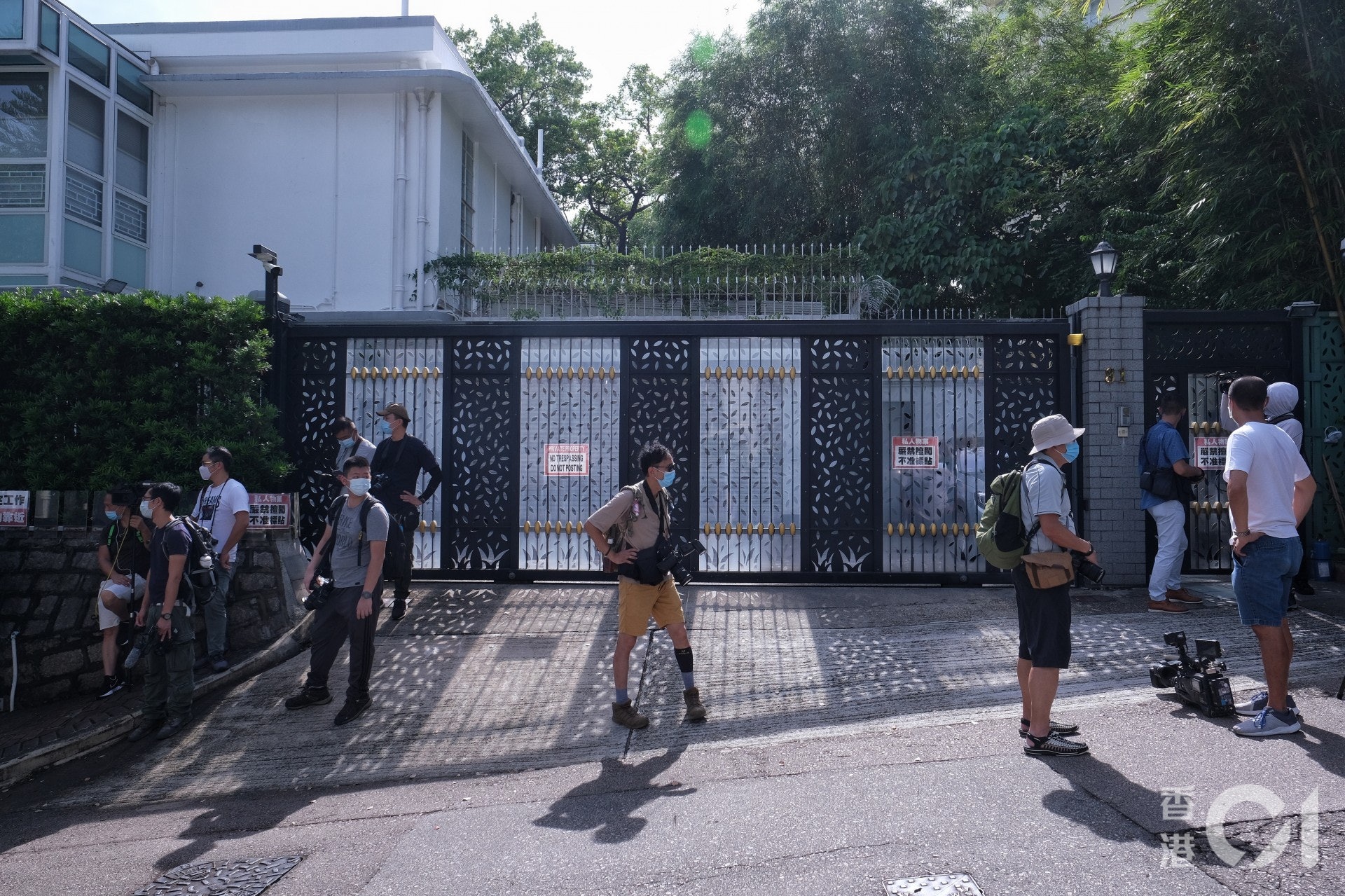 + C4 N: S8 \- m2 ]$ L【黎智英被捕】大批傳媒在黎智英大宅外採訪。(羅君豪攝)