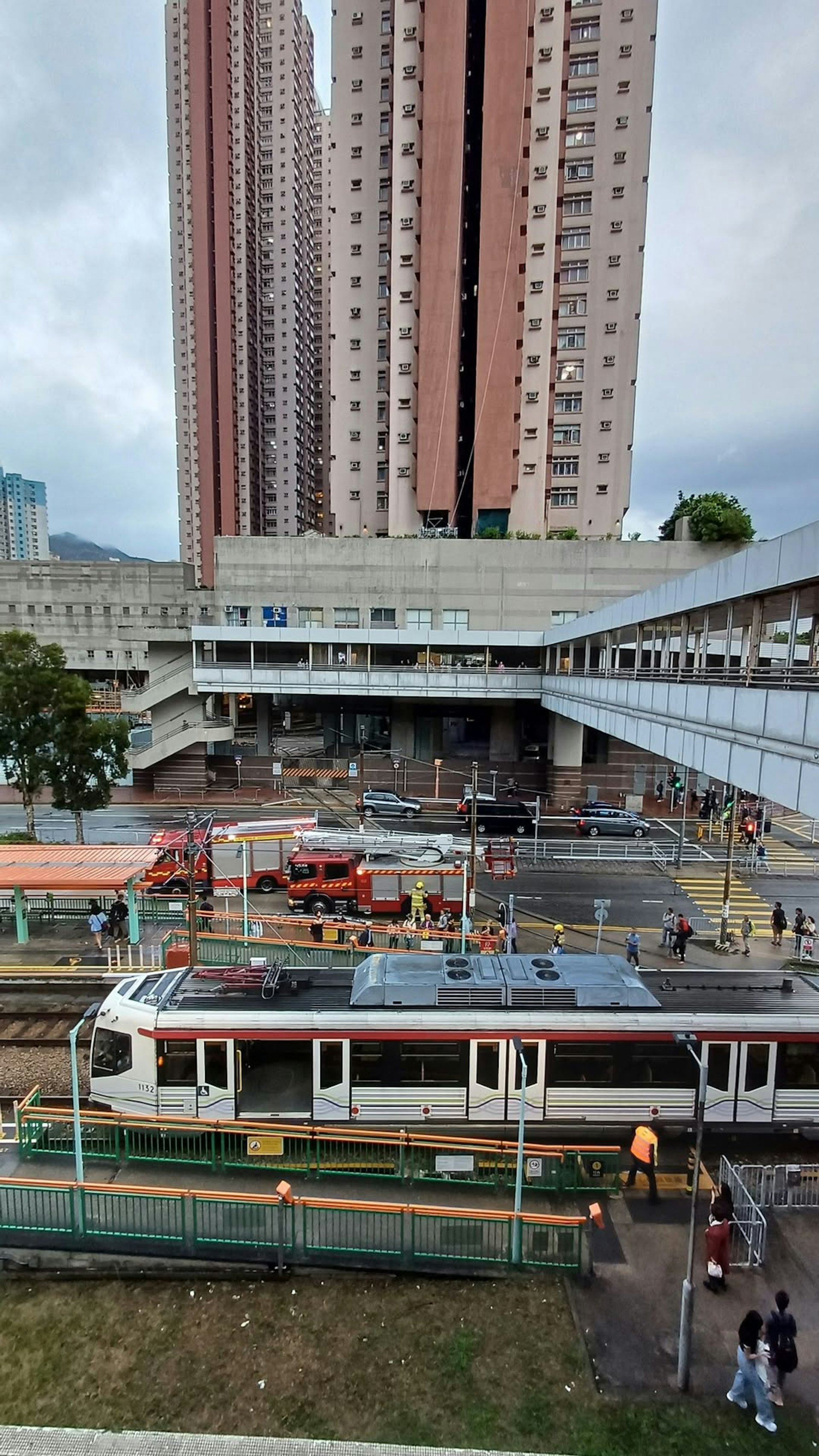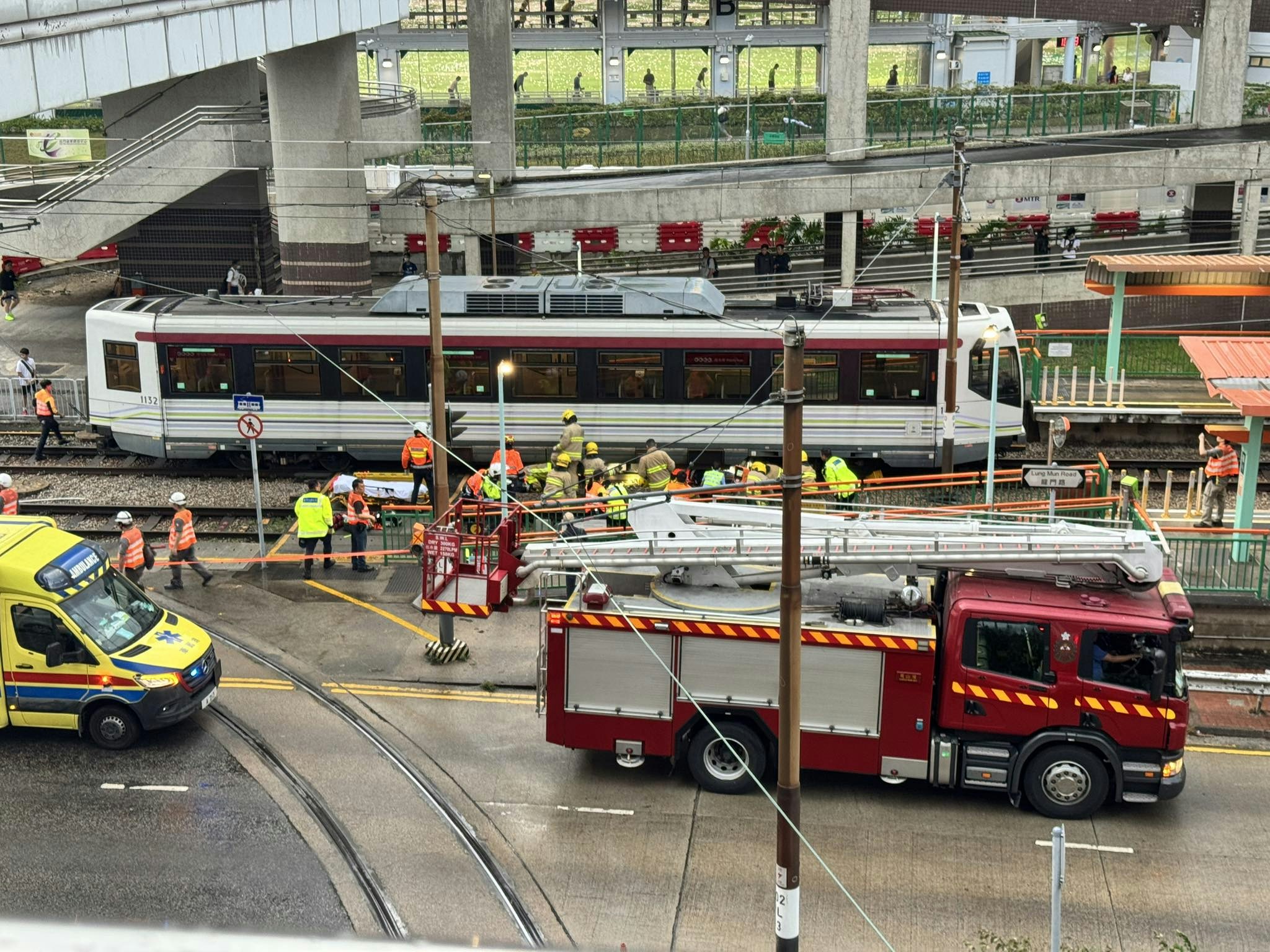 2 f7 U H( C* e6 z# ^公仔箱論壇大批消防到場救援。有輕鐵列車停在月台附近。(Facebook 真.屯門友Kam Dor Bo)