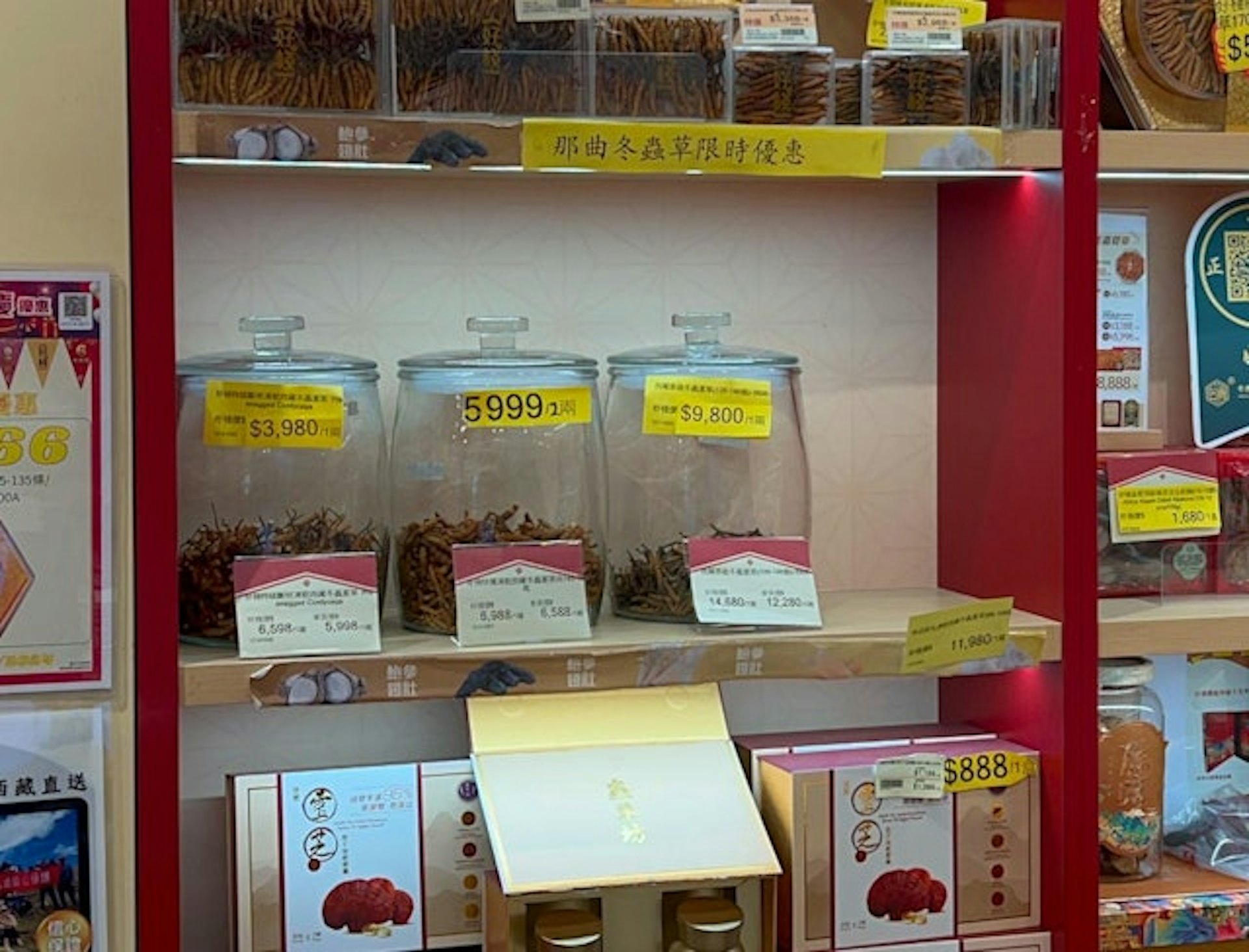 $ a5 r( @% }( ETVBNOW 含有熱門話題,最新最快電視,軟體,遊戲,電影,動漫及日常生活及興趣交流等資訊。11月26日沙田瀝源廣場一間海味店遇竊,男賊趁職員不察,將整樽價值約5萬元的冬蟲夏草偷走,逃去無蹤。涉案蟲草本與另外3宗價格較低的蟲草放在同一貨架上,標價11,980元一両。(資料圖片)