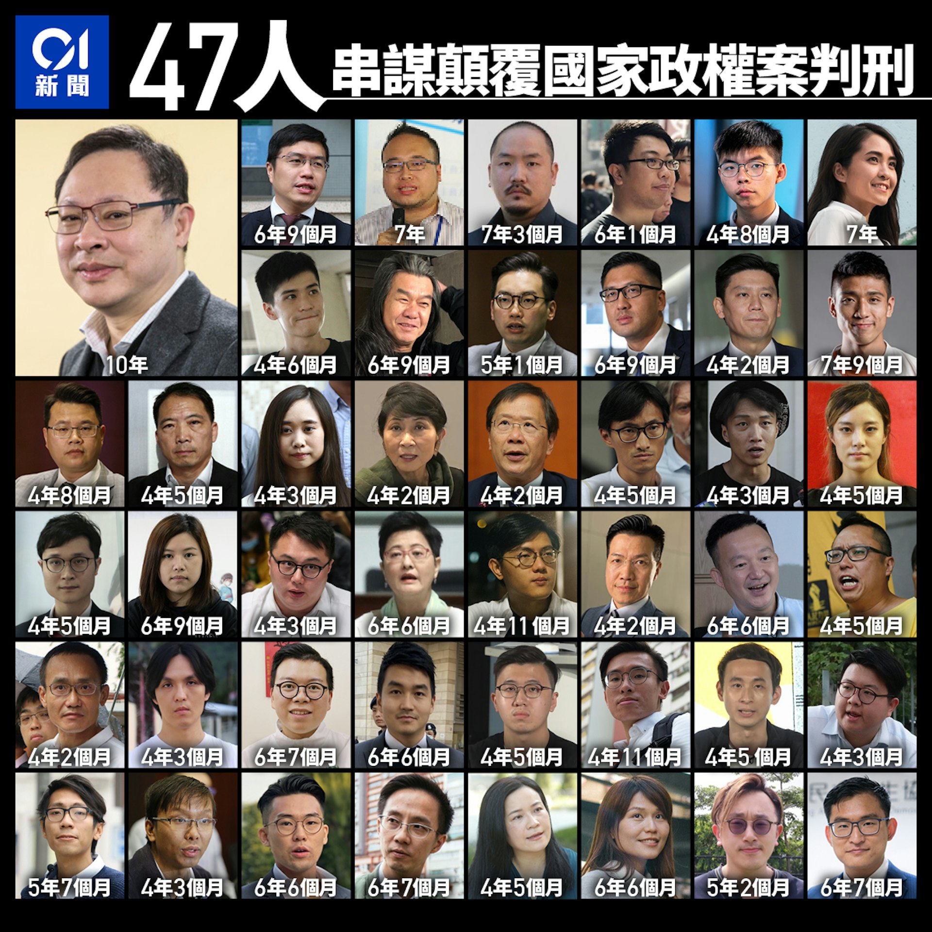 3 C x7 d$ x; [3 E; {* y47人顛覆案專頁47人案,45人串謀顛覆國家政權罪成,刑期一覽。(香港01製圖). V4 S8 y( l+ L% A# W6 \1 h