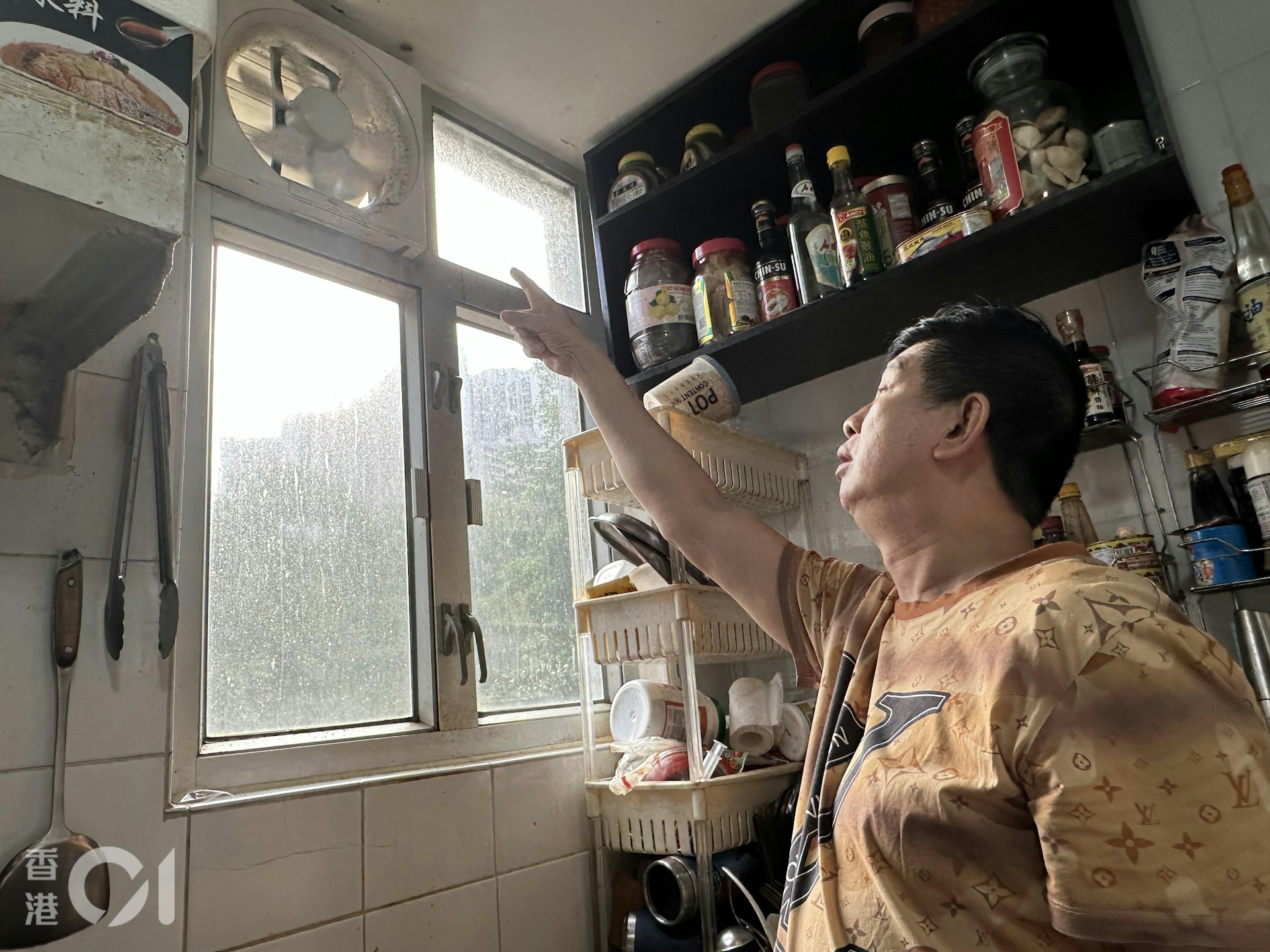 : Z8 |, a2 C( ~6 }& t$ J& W6 a廖先生指廚房沒開抽氣扇。(黃學潤攝)