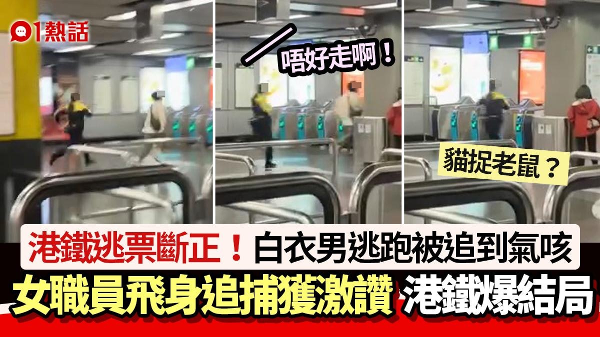 港鐵職員使出「洪荒之力」打擊逃票?本港網絡瘋傳1段「尖沙咀站貓捉老鼠大戰」影片,見港鐵尖沙咀站有長髮女職員極速追趕1名疑似逃票、正在拔足狂奔的白衣男子,且邊追邊叫「唔好走啊!」。上載影片者笑言「如果當初我有呢個速度,左右夾擊都走到c●s」。