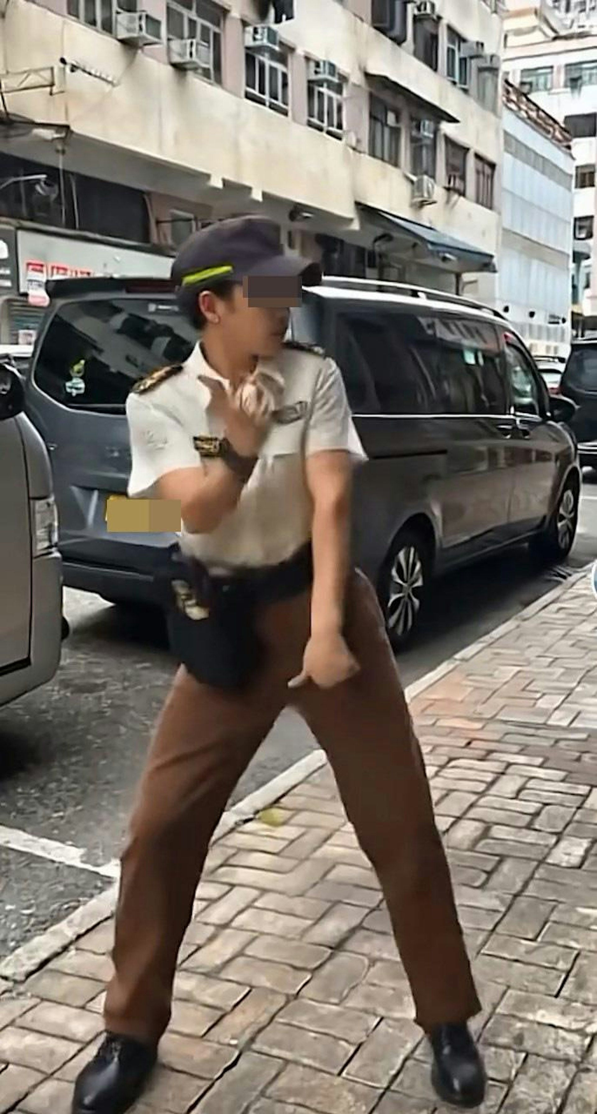 網上流傳跳舞影片的女子,身穿的制服與真正的交通督導員制服有不同。(香港警察Facebook圖片)' {$ k+ {5 T1 Y9 Q+ s4 P