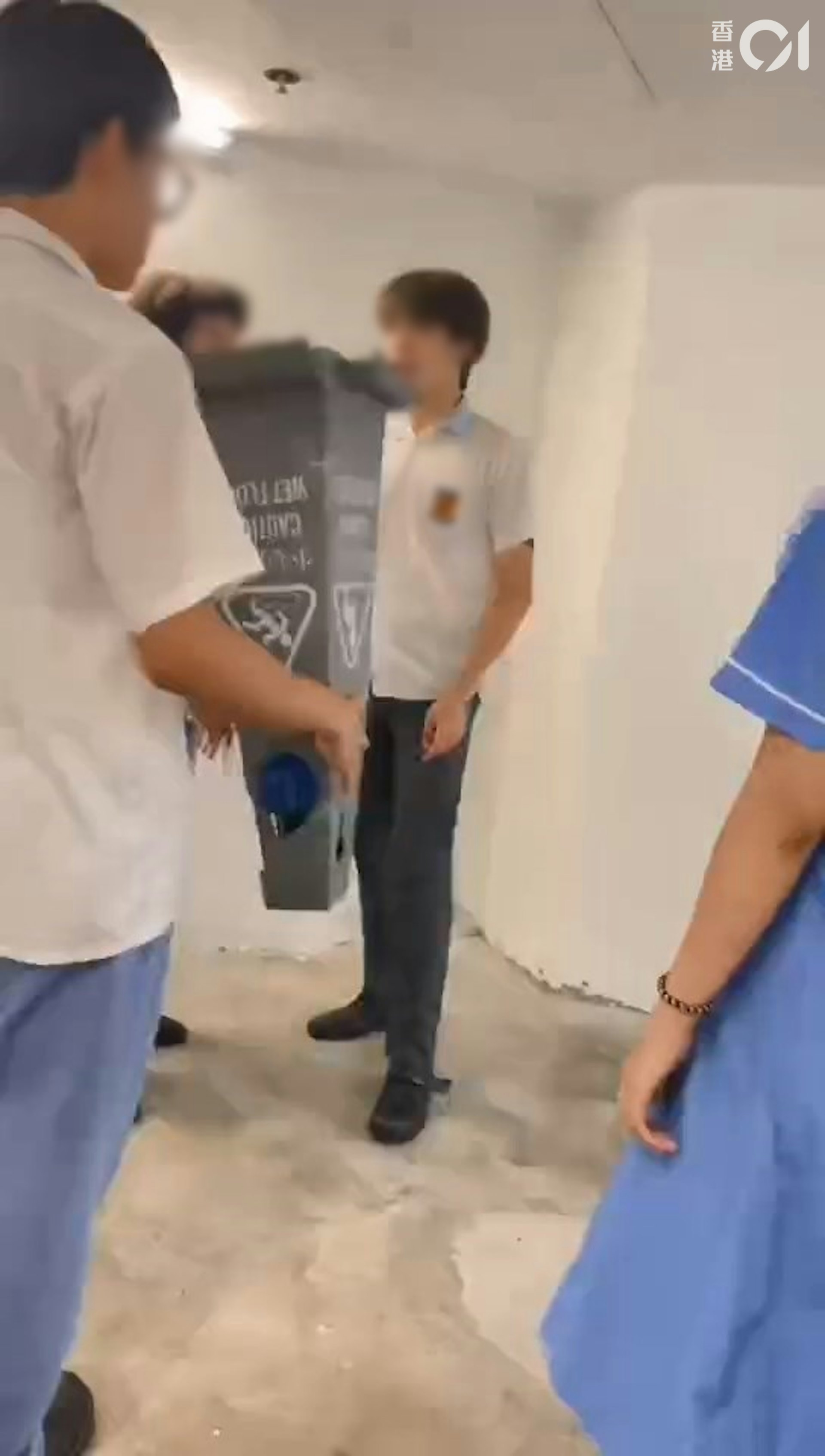 其中主要一名戴眼鏡男學生「主持」大局及動手。(讀者提供影片截圖)