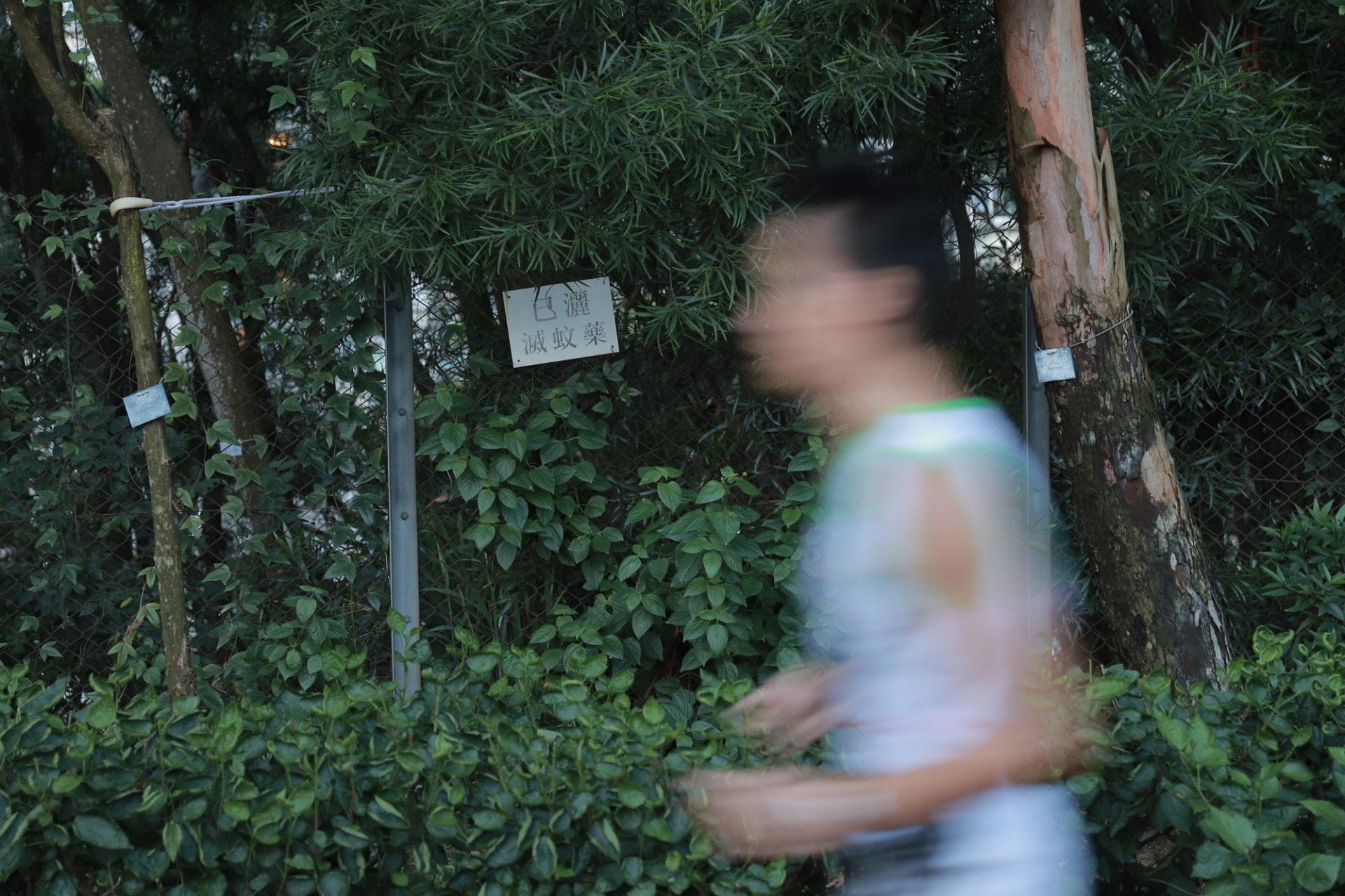 $ f; Y ]$ D: r5 g4 P/ c2 Y《香港01》記者傍晚到晒草灣遊樂場的草地球場視察,發現球場附近被矮樹叢及樹木圍繞,圍籬上掛有「已灑滅蚊藥」的告示,場外亦至少有兩部太陽能滅蚊機,惟記者在現場逗留了30分鐘已被蚊叮咬了一處。
