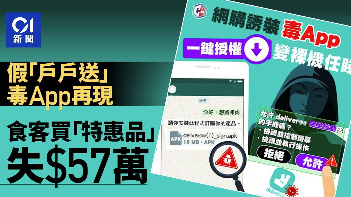 假冒外賣平台「戶戶送」有毒應用程式再現,用戶如不慎下載黑客提供的APK檔案,安裝及允許毒App完全控制手機,手機隨時變「裸機」任黑客入侵,一名男子便因此痛失57萬元。TVBNOW 含有熱門話題,最新最快電視,軟體,遊戲,電影,動漫及日常生活及興趣交流等資訊。) V- V, \* P! U G |' U