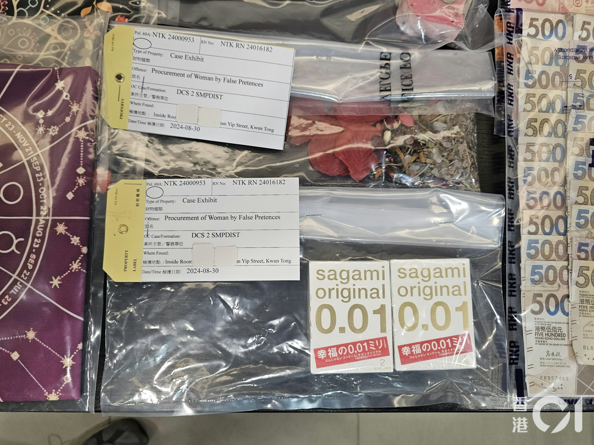 秀茂坪警區重案組第二隊接手案件後分析閉路電視,再鎖定犯罪團伙一名女骨幹成員,昨日(30日)下午持搜查令,到位於觀塘同一棟商業大廈搜查3個單位,並拘捕一名正在離開單位的25歲女子,相信她為涉案IG帳戶和犯罪團伙的操控人。警方在單位搜出料屬犯罪得益的約2萬港元現金、不同類型占卜用品、銀行卡、電話卡、電腦設備、記帳簿、點鈔機及大量避孕套。tvb now,tvbnow,bttvb5 f" ?+ d' E P$ g1 ^9 l, _7 C' U