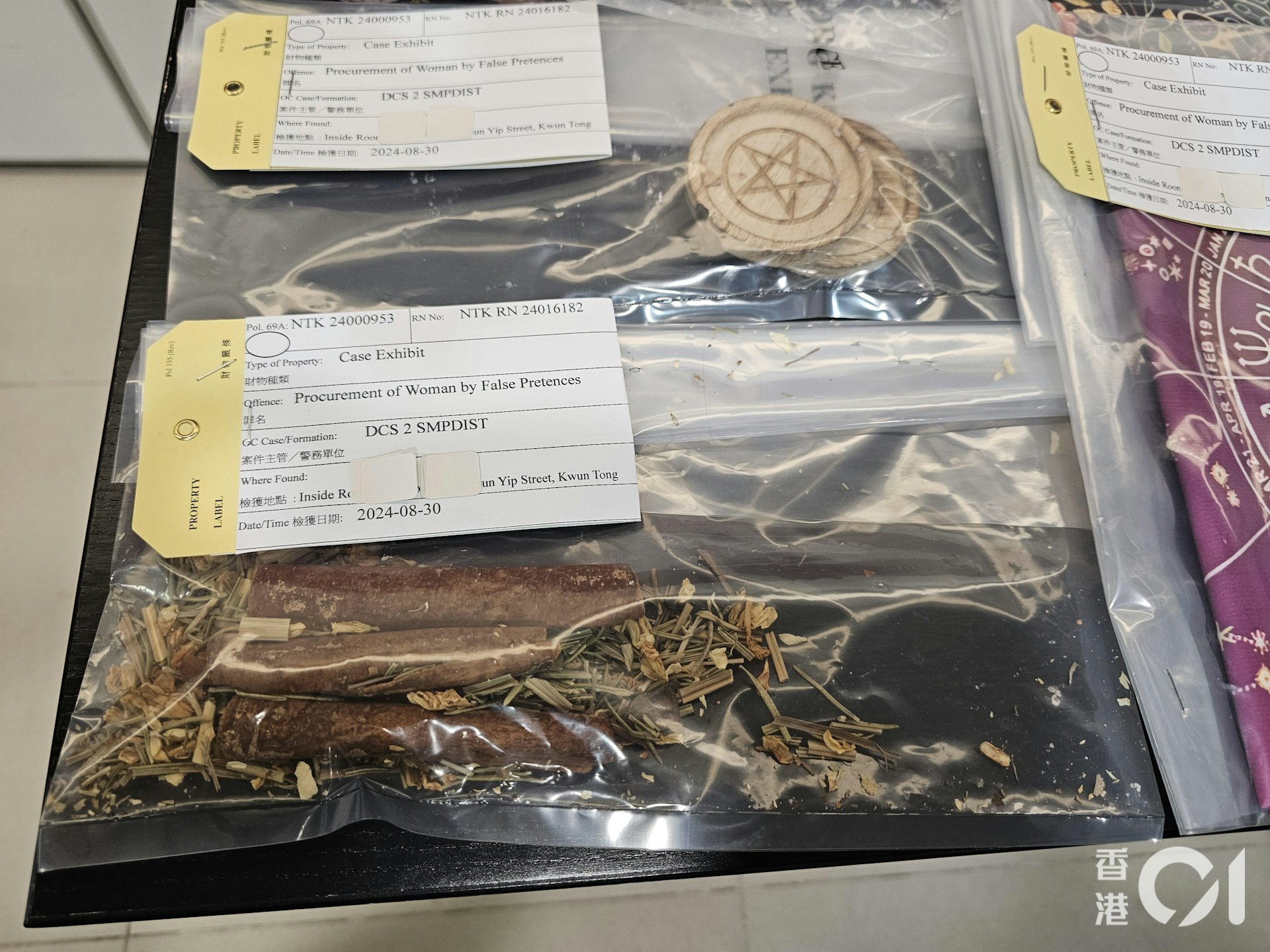 6 q# V1 Z$ o) z+ J& Y0 v警方在單位搜出不同類型占卜用品、銀行卡。(梁偉權攝)公仔箱論壇1 T( X- \1 q5 x3 M0 B5 _