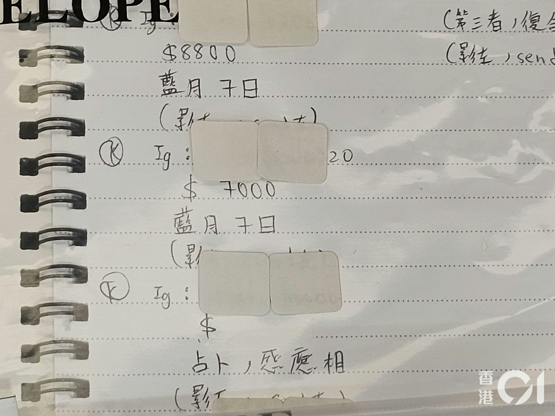 警方在單位檢獲記帳簿,其中有寫上一些儀式。(梁偉權攝)