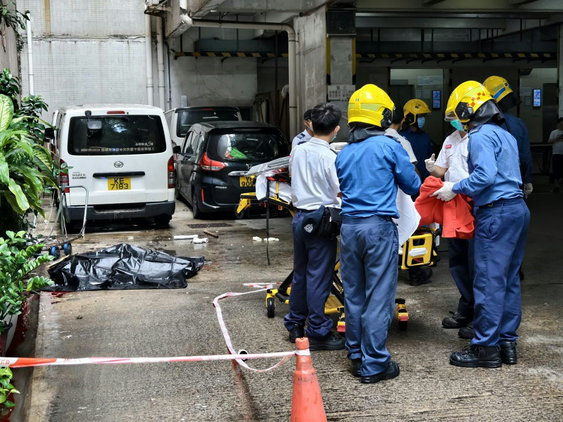 # ^6 a; L' c' d7 ]6 {男工人由15樓墮下,當場身亡。(讀者提供圖片)