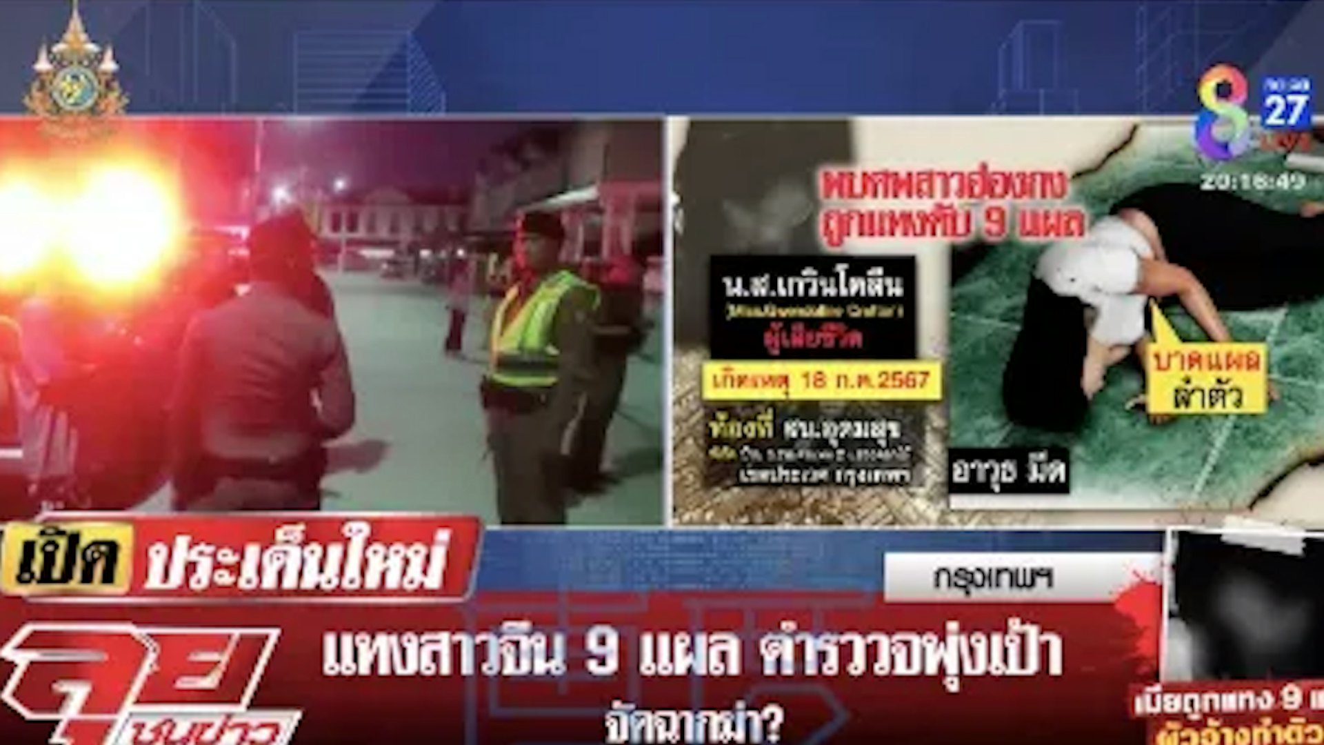 2 i" A$ E3 V1 R' a! p公仔箱論壇2024年7月18日,一名24歲的香港籍女子Gwendoline Cretton在曼谷身中9刀遇害。(泰國第八頻道新聞截圖)公仔箱論壇9 P5 D q% E7 P" w. V* `" {# t