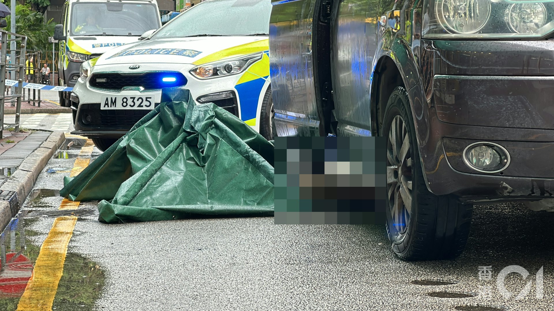 大角咀女子捱客貨車撞捲車底,當場傷重不治。(馬耀文攝)