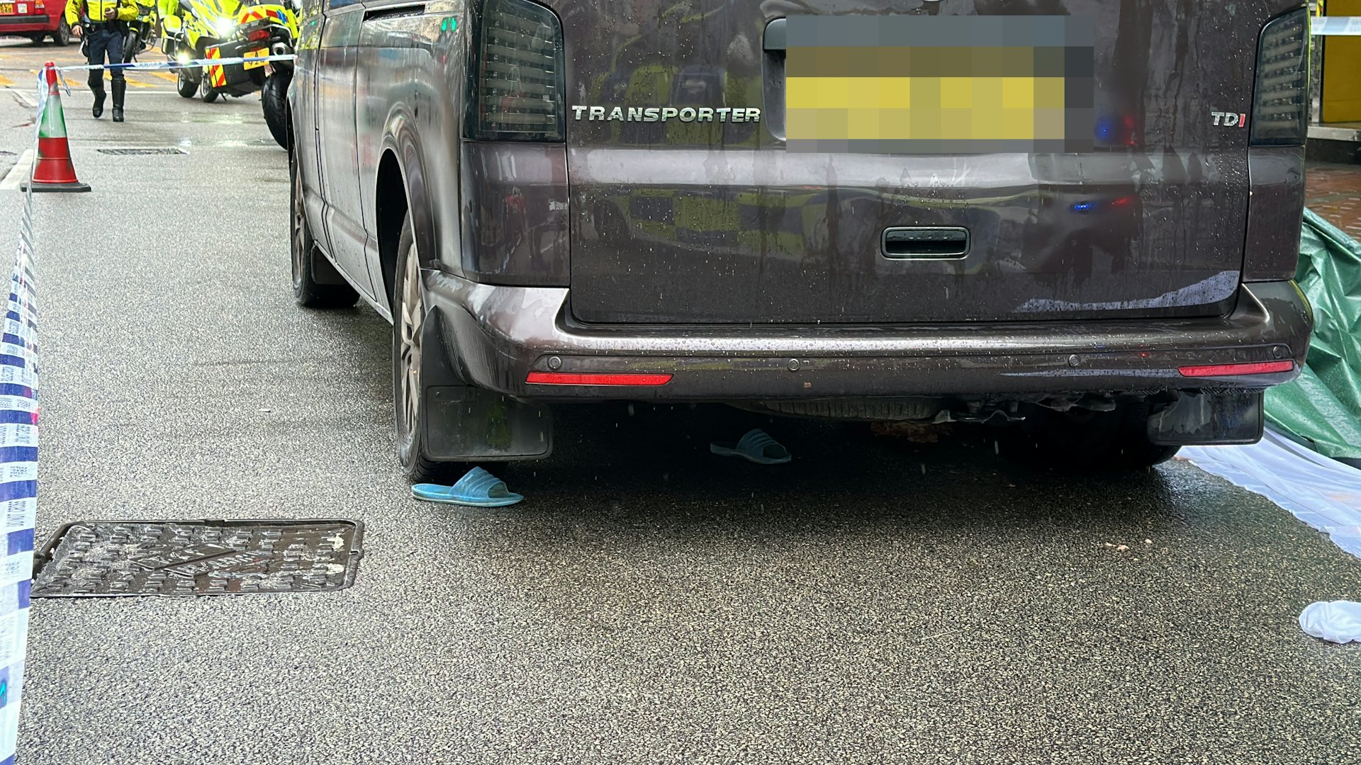 & {6 H% a* H* P3 `( B) V現場所見,死者下半身捲入客貨車車底,遺下一對拖鞋。警方翻查附近商戶閉路電視,以調查事故起因。西九龍總區交通部特別調查隊正跟進調查案件。