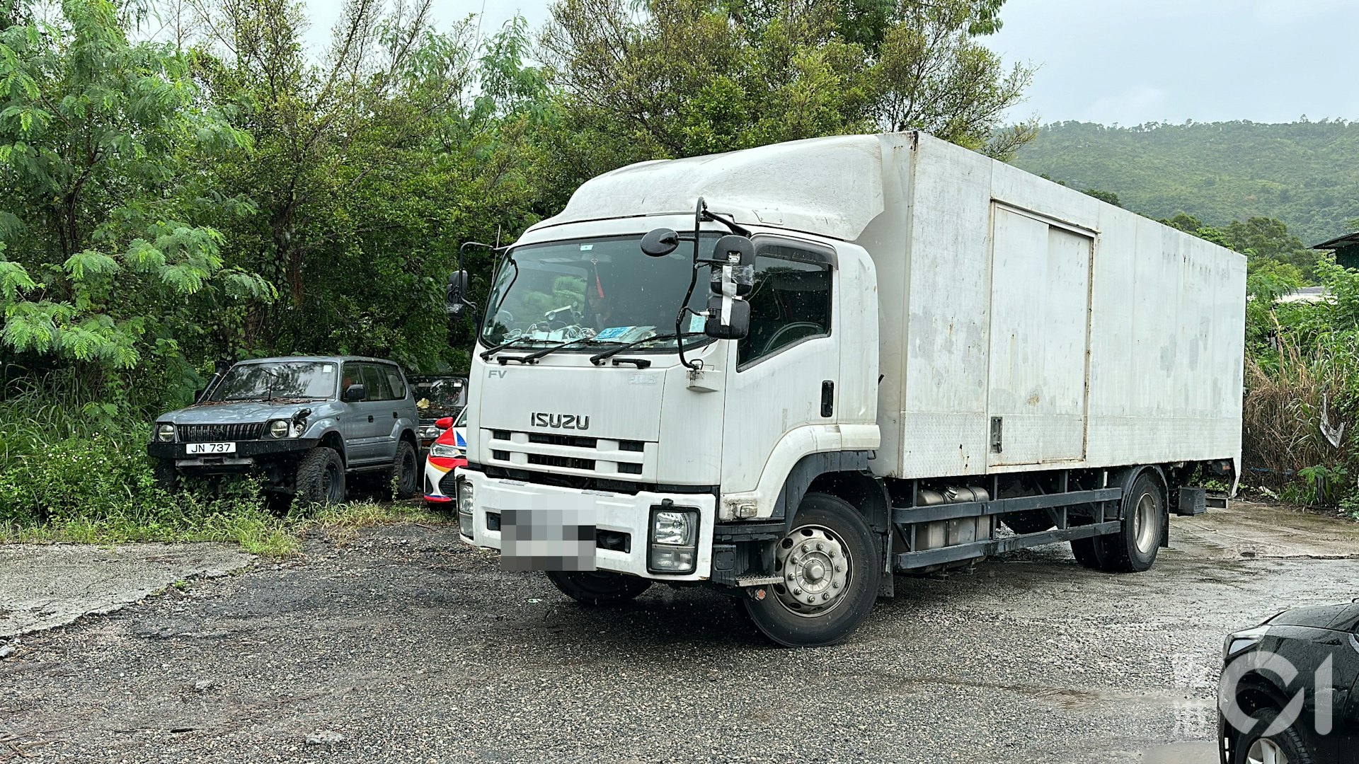 警方經追查後,在八鄉馬鞍崗尋獲涉事中型貨車及司機。 (黃學潤攝)公仔箱論壇) q. P( J: \9 d% Z