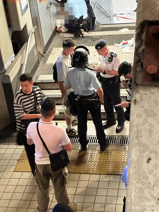 警員封鎖彩虹站A2出口。9 L% ?8 I8 [! D: F- P! [5 }