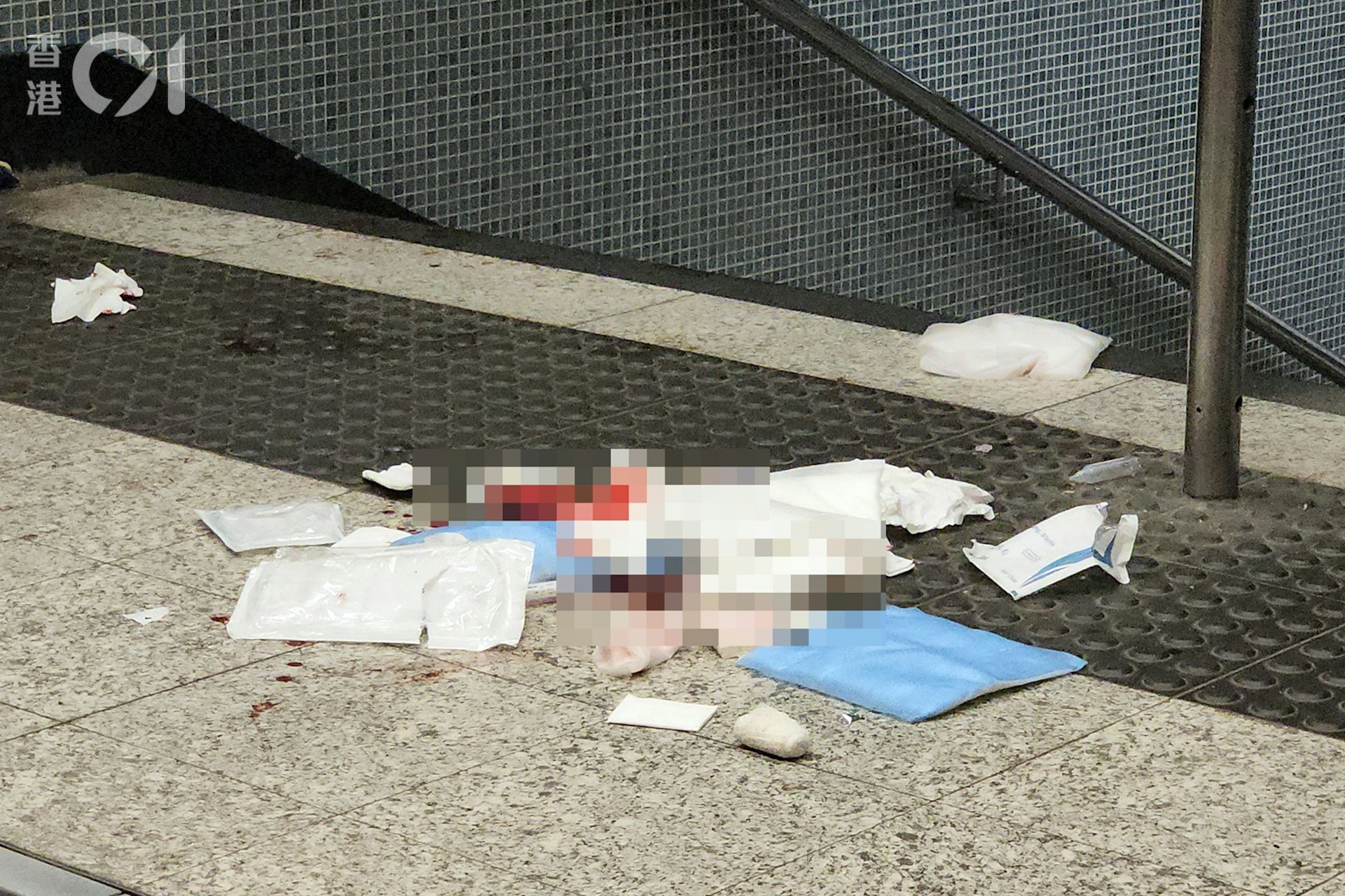 # A- f- [: d/ swww2.tvboxnow.com就現場所見,大批警員封鎖港鐵彩虹站出口,一名疑犯被警員制服按在地上,有警員則持盾及戴上頭盔戒備。地鐵站出口的地面,則遺下血跡。此外,警員亦在附近地面檢獲一把懷疑涉案的摺刀,該摺刀仍在半開合狀態,並未鎖定。