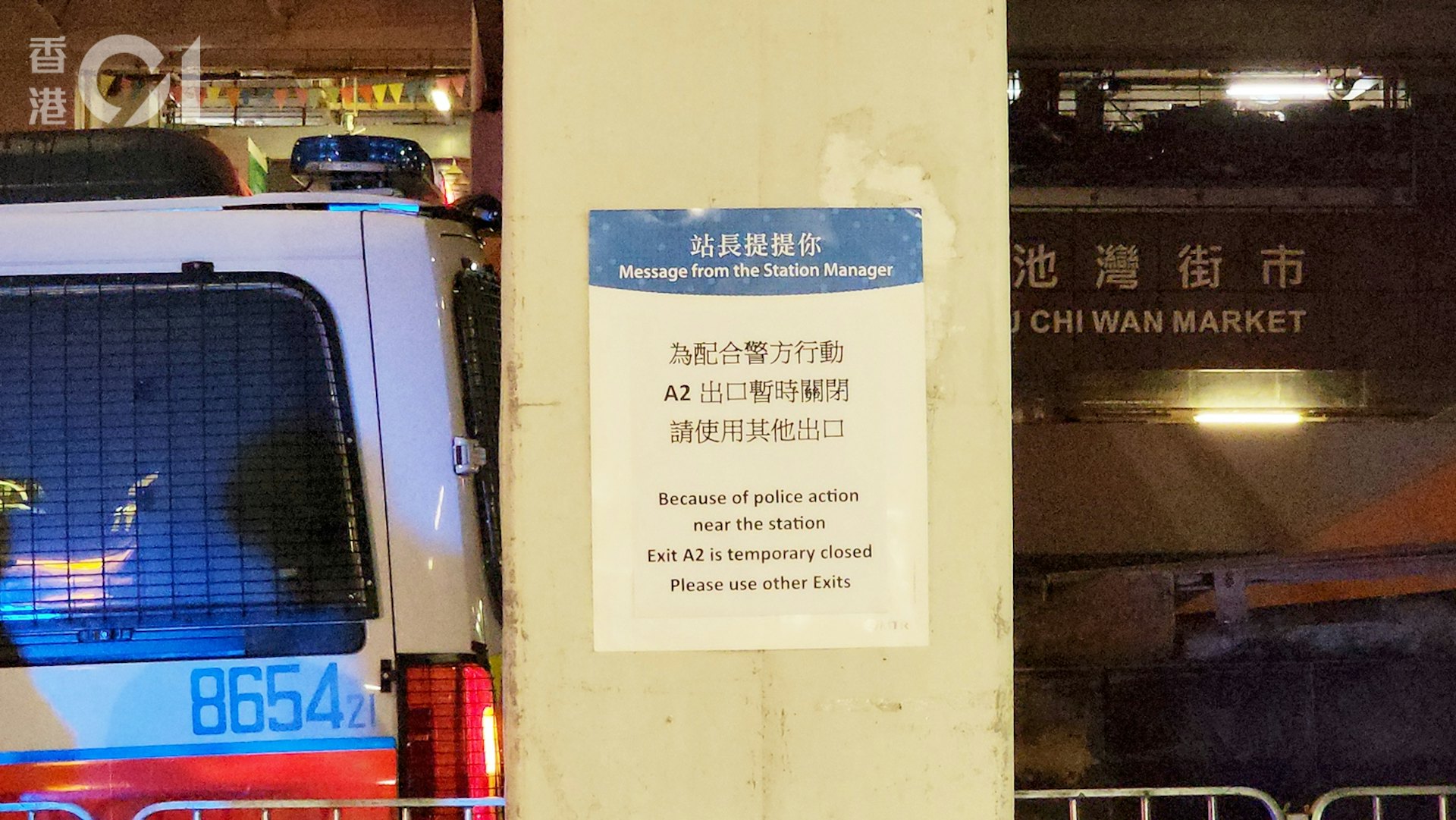 港鐵指配合警方行動,封閉彩虹站A2出口。 |