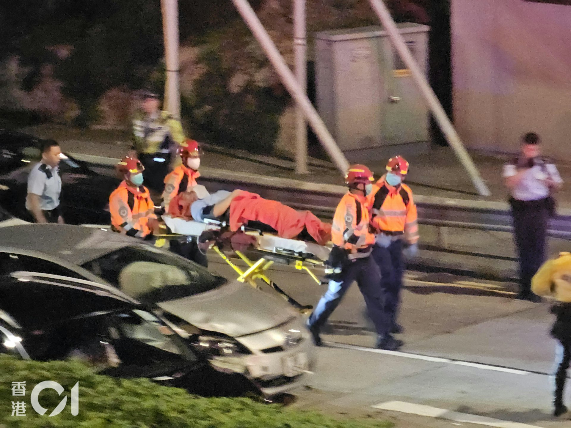 + n [; z" |; N何文田公主道警方疑追截可疑車時,一名男警受傷,戴上頸箍及氧氣罩送院。(鄧海興攝)