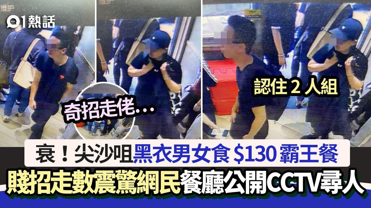 有尖沙咀餐廳職員於網上群組發布閉路電視(CCTV)截圖,指有1對港人男女食「霸王餐」。(Facebook群組「香港茶餐廳及美食關注組」)