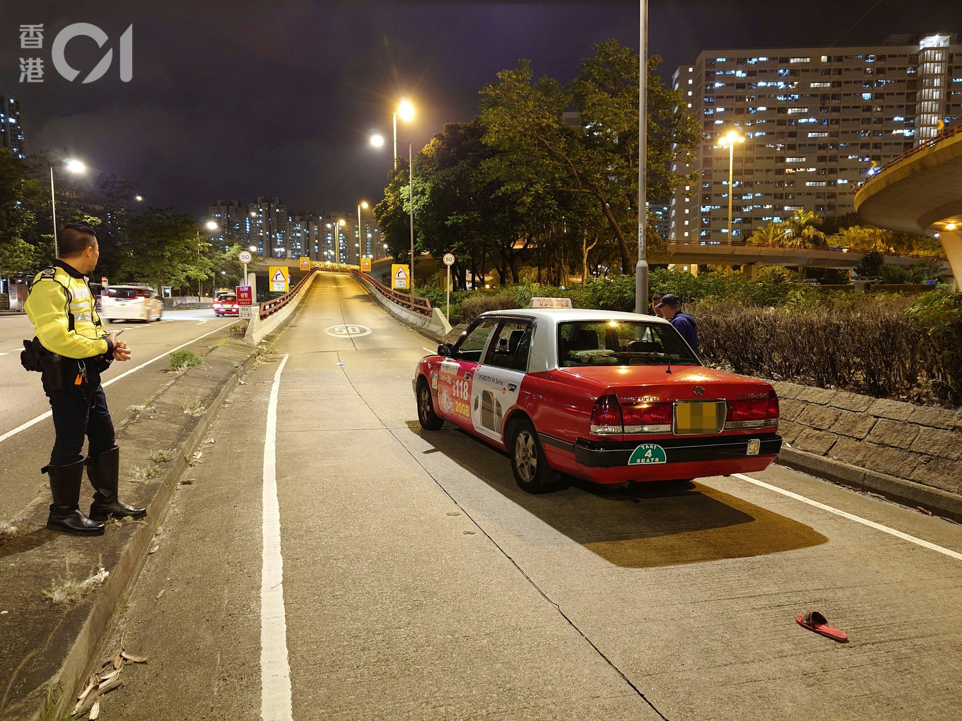 消息稱,的士載有兩名乘客,駛至上址時,一名老婦走出左邊行人路,繼而橫跨5條行車路,走到支路天橋口,的士懷疑收掣不及將她撞飛。