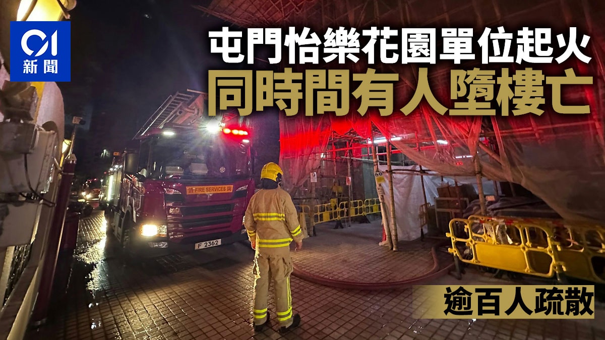 ) L" {% X/ M, l公仔箱論壇屯門發生火警及墮樓案。周二(2日)清晨4時48分,據報怡樂花園第一座20餘樓一單位,懷疑發生火警。消防接報趕至現場破門入屋,發現上址火光熊熊,於是開喉灌救,同時疏散大廈內約120名住客到地面暫避。