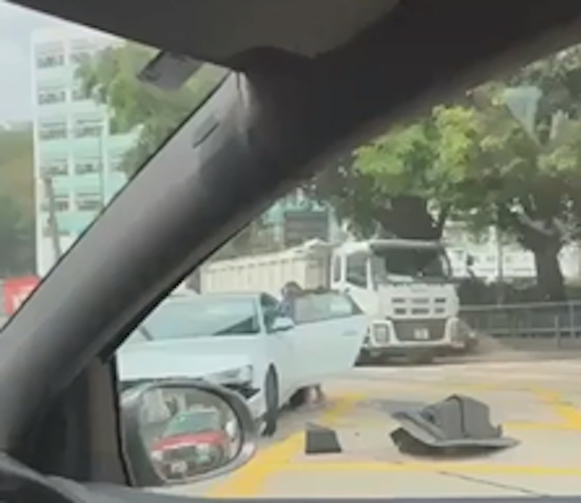 涉事私家車車頭嚴重損毀。(讀者提供片段截圖)