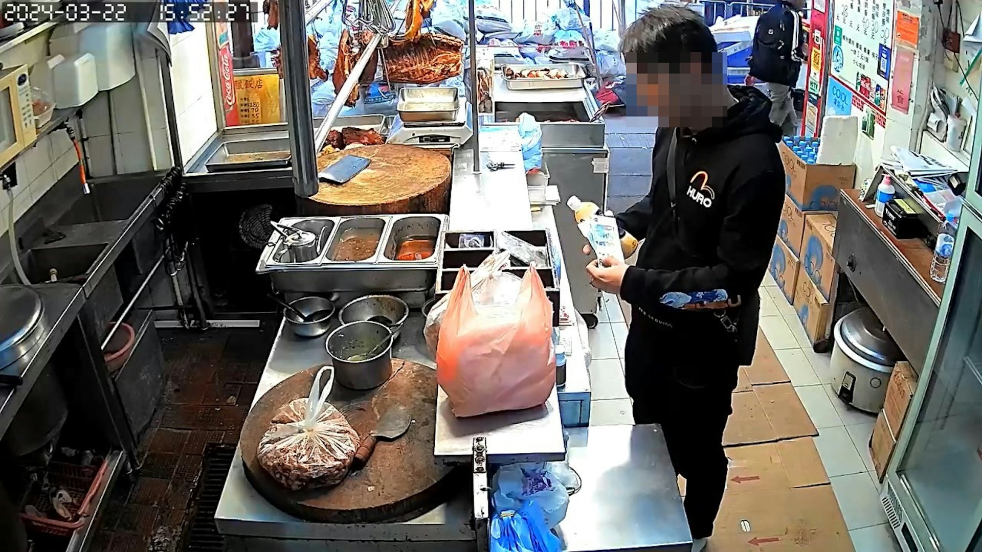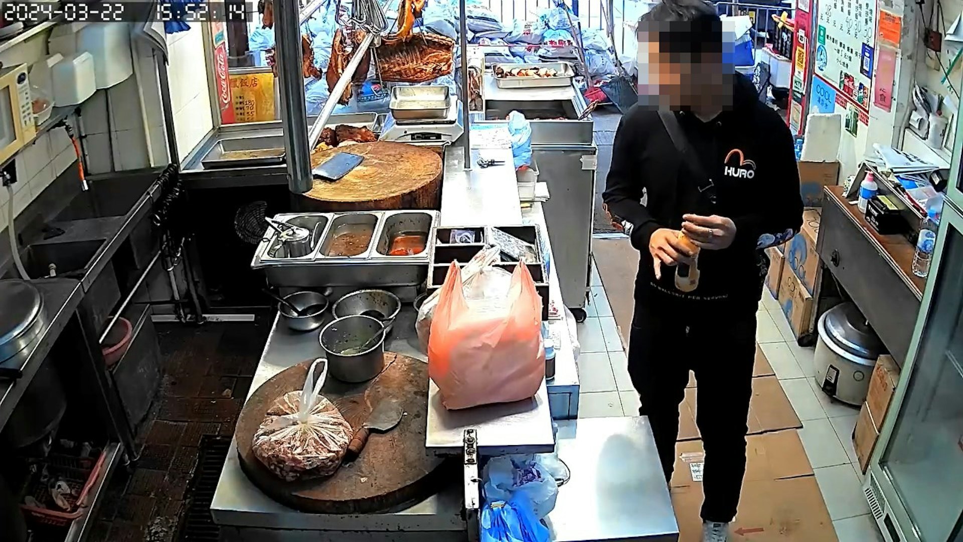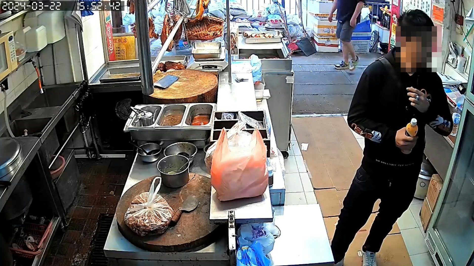 涉案男子經過燒味舖後入內。(網上影片截圖)