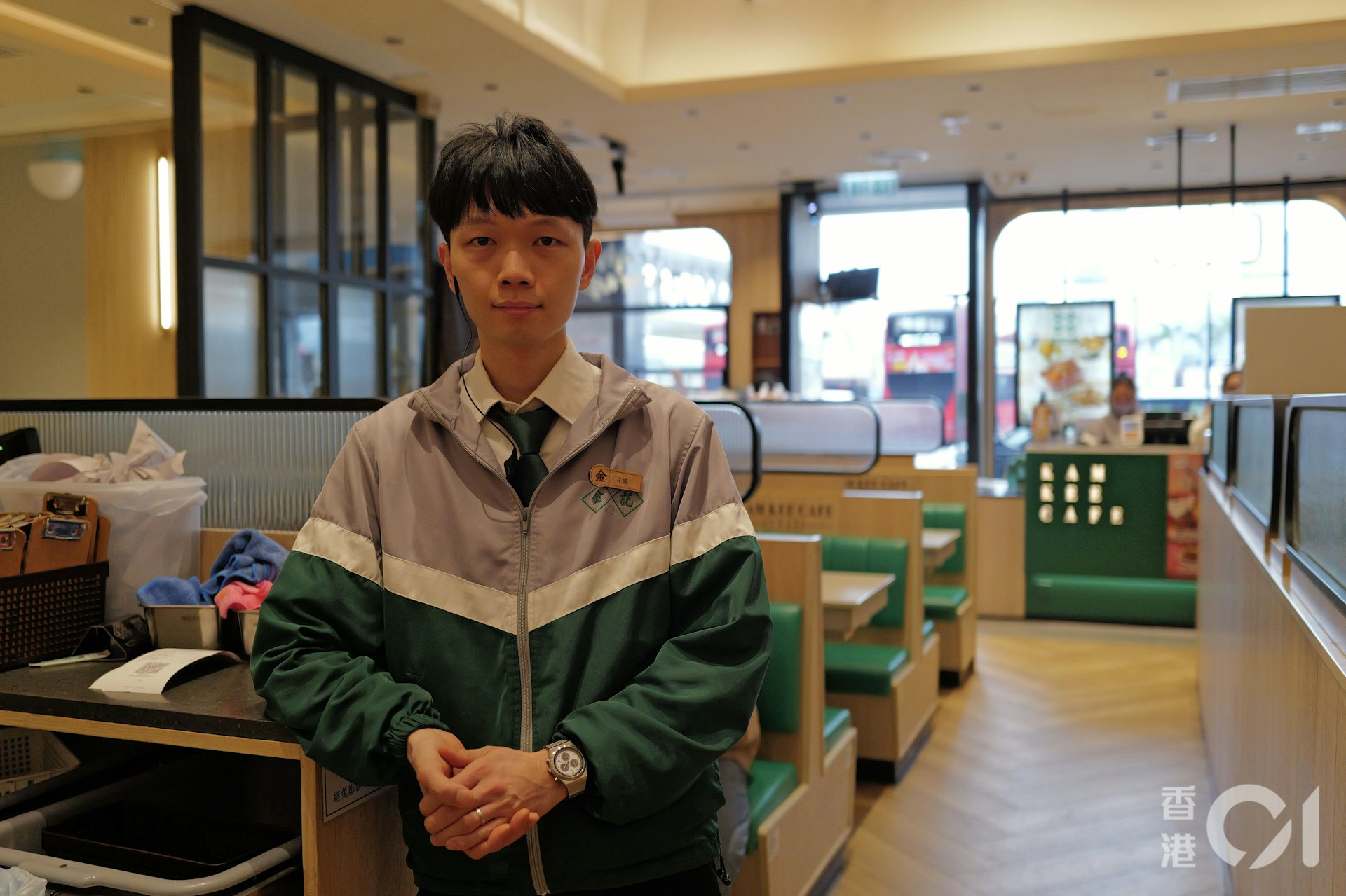 4 G+ R# y0 n) f金記控股主席徐汶緯早前便在電台節目提到︰「兩三個人一人一個菠蘿包,一杯飲品就算數,打張卡影過相,咁就當消費過。」(歐嘉樂攝)
