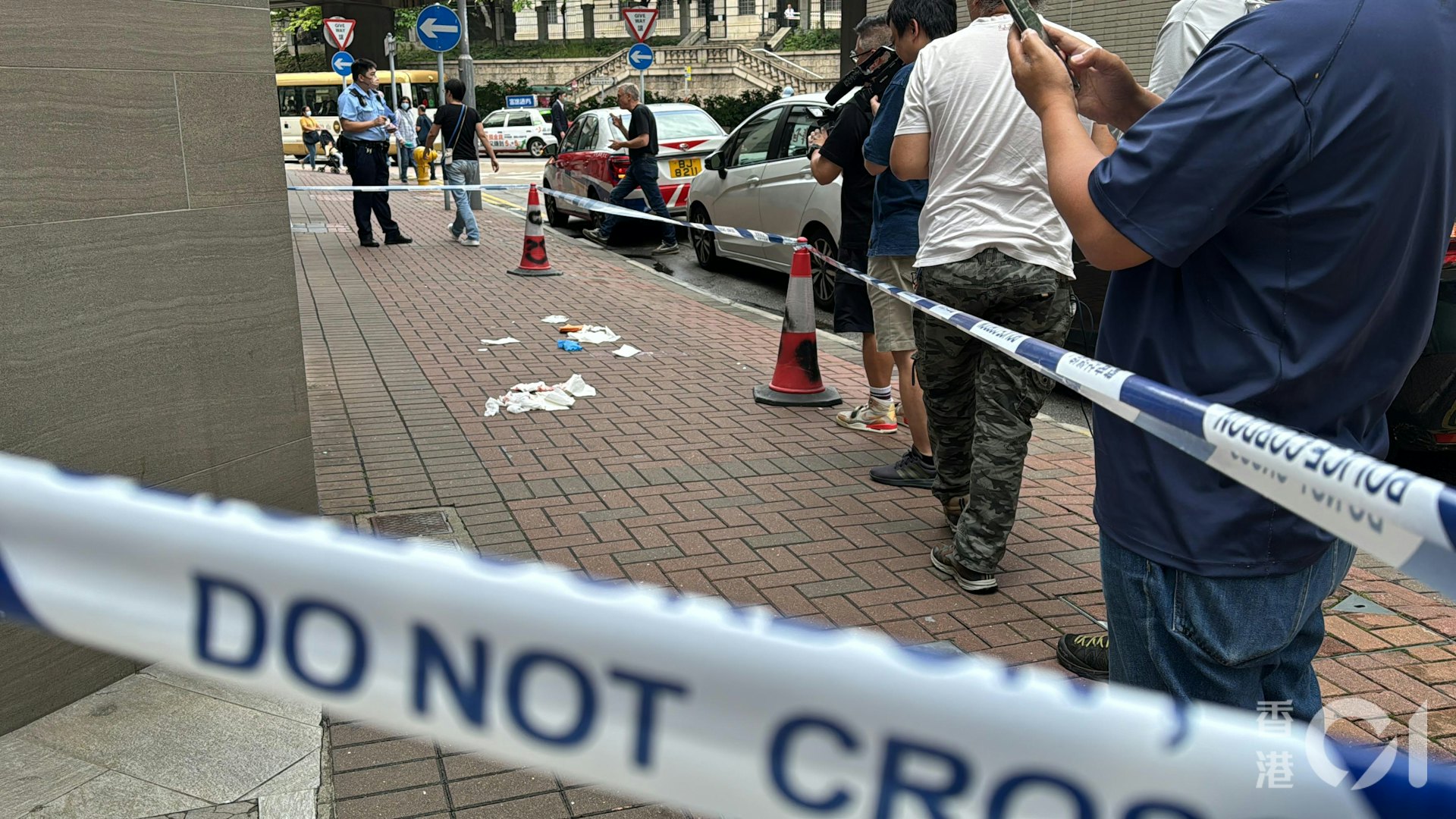 油麻地茂林街近拔萃女書院,一名60多歲男子遭另一名20多歲男子揮刀斬傷。(翁鈺輝攝) |