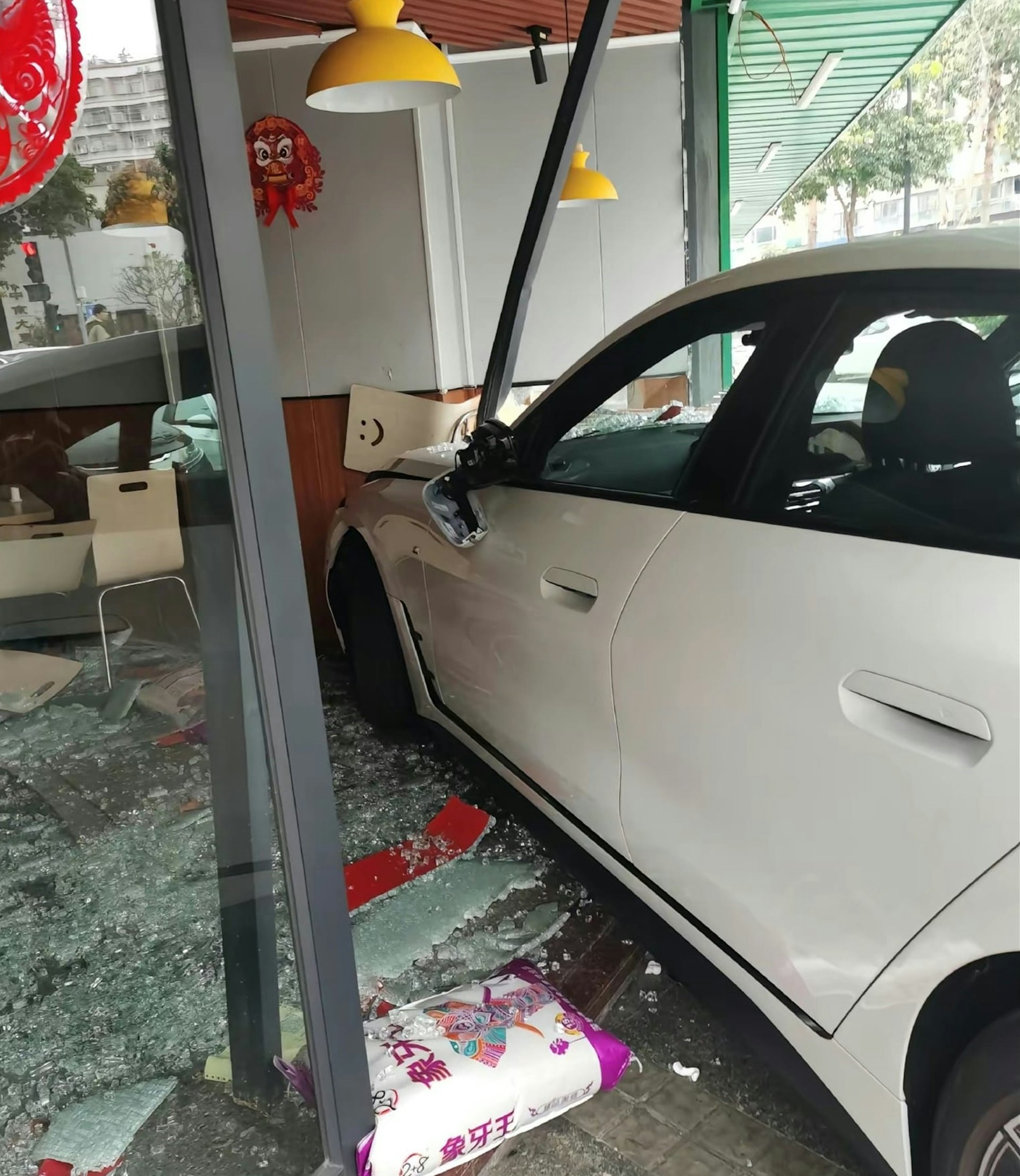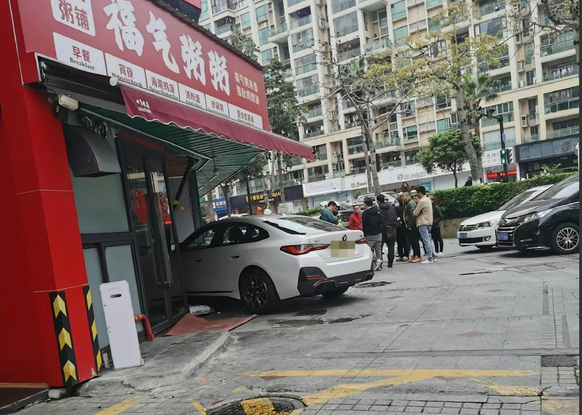 ! n. x% _ T# f1 n* X" r h寶馬半截車身插入粥舖。(網上圖片)4 h9 [" {9 Z$ q2 N8 b
