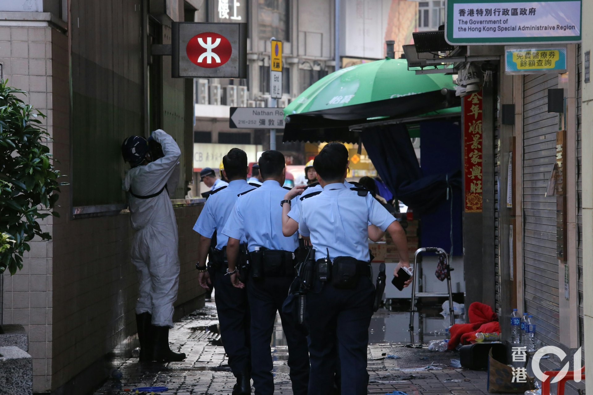 ' e1 l, |& D3 S( S' B佐敦華豐大廈4月10日發生3級火,多人死傷,鑑證人員當日下午到現場調查蒐證。(羅日昇攝)