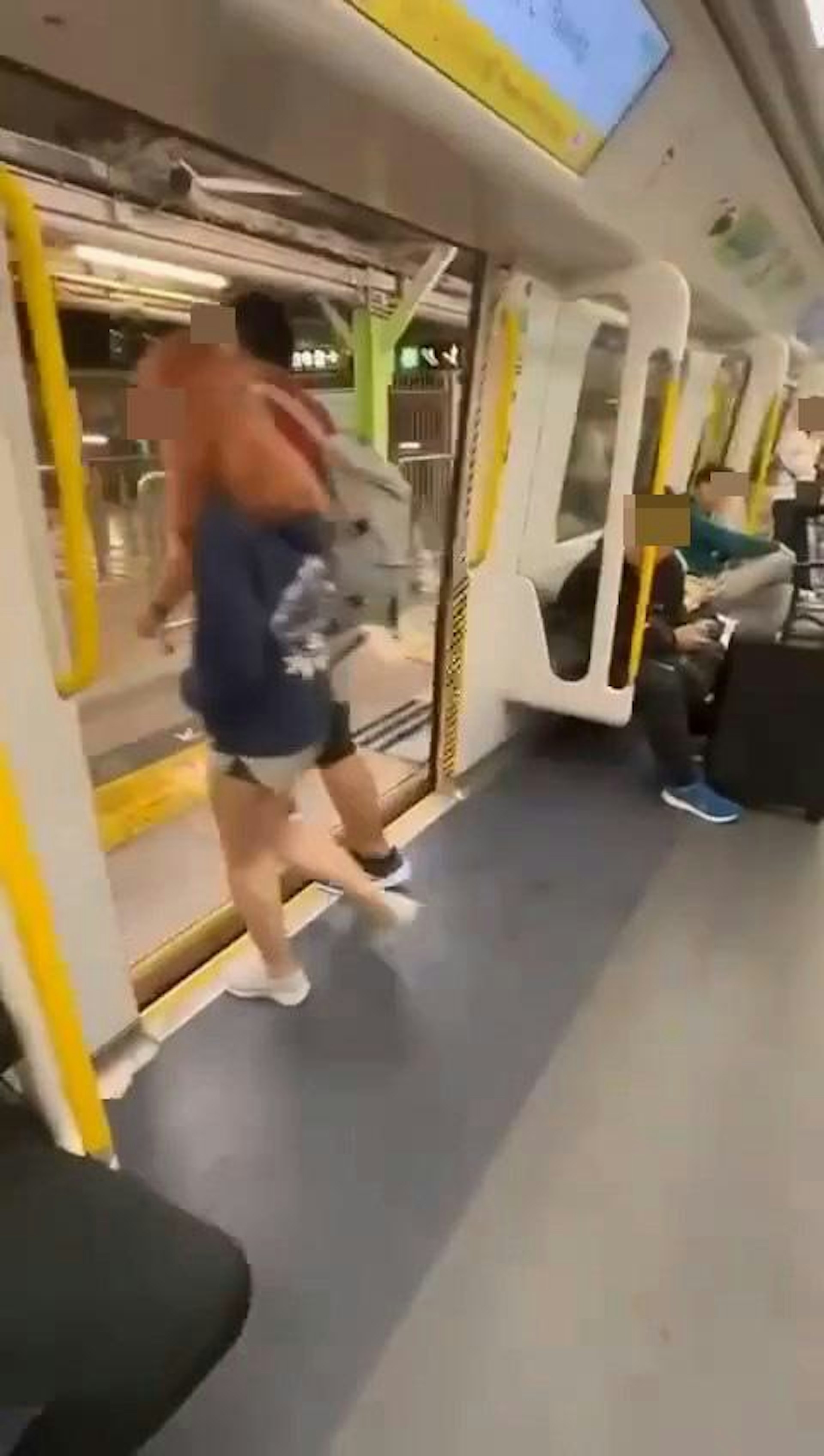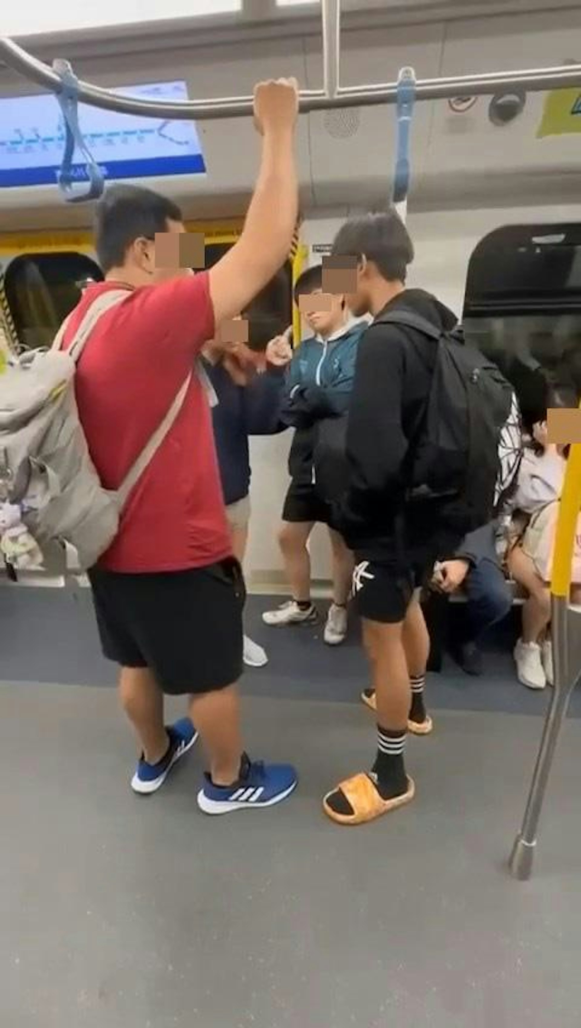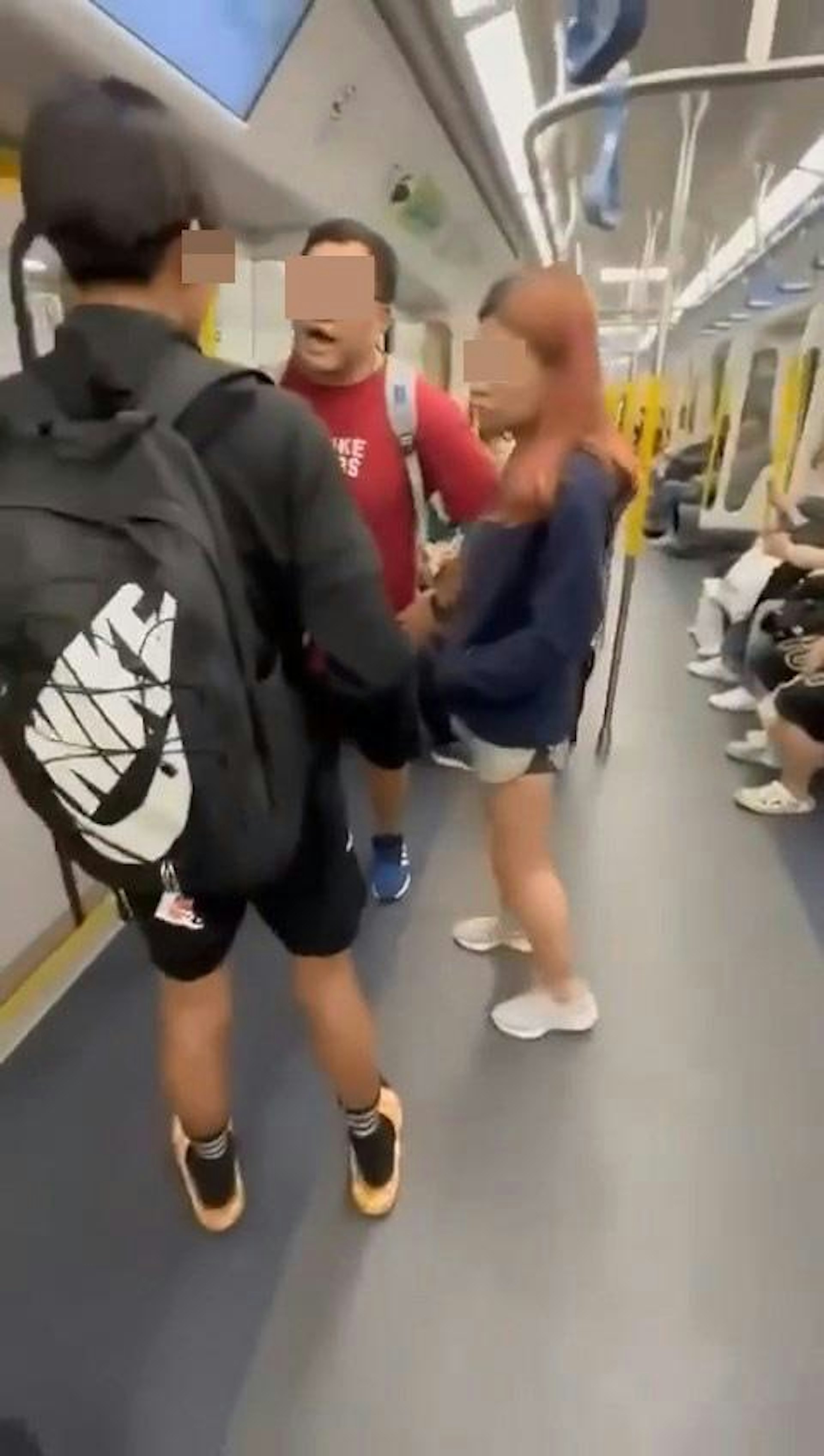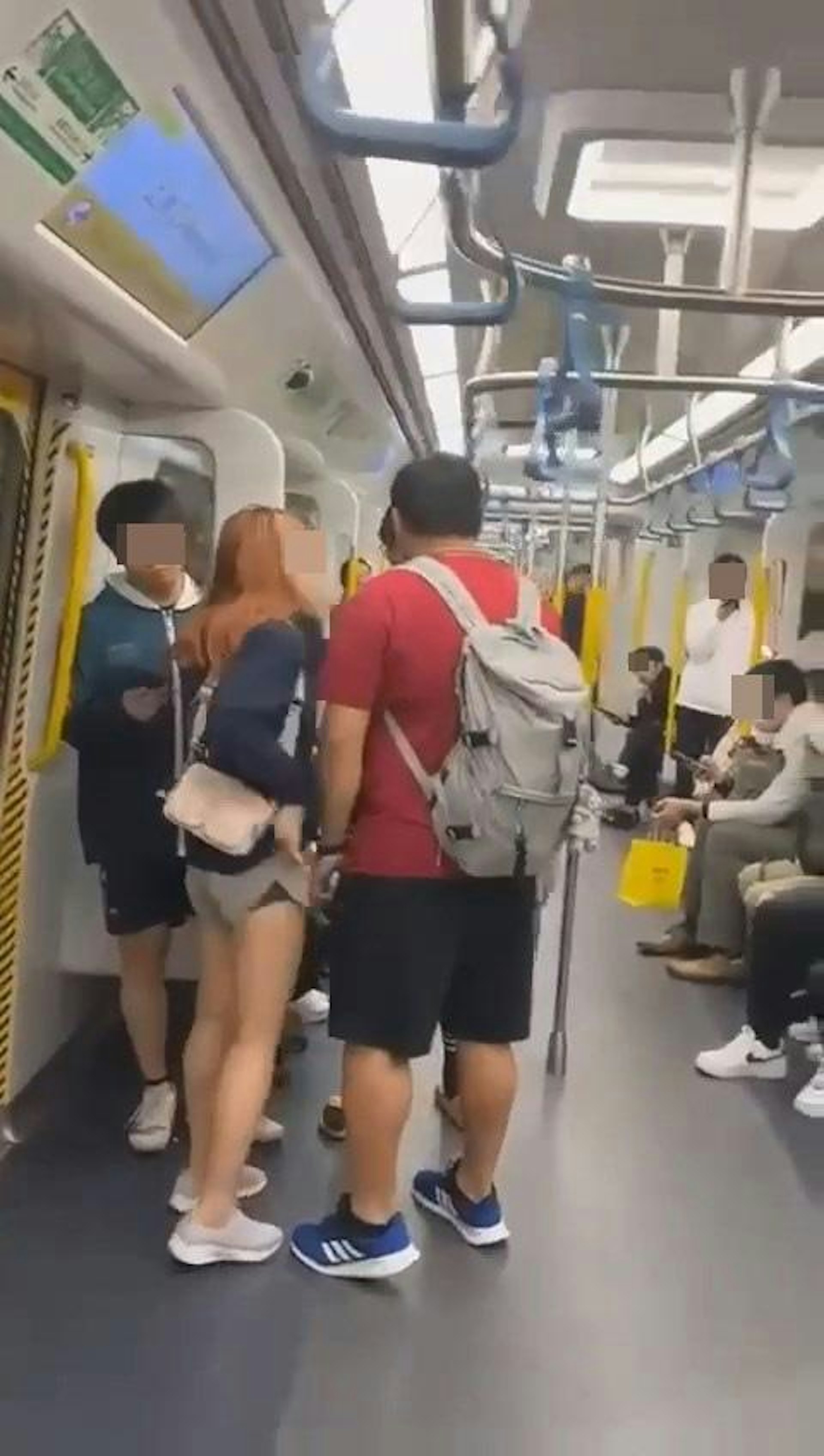 ( g/ |( g. B1 b8 i) x7 g: |本港網絡瘋傳1段「港女大鬧港鐵」影片,有穿短褲的港女等下車「踎地」,當時有男學生望了一眼,詎料港女看到後即大爆發,怒斥對方性騷擾。(影片截圖)