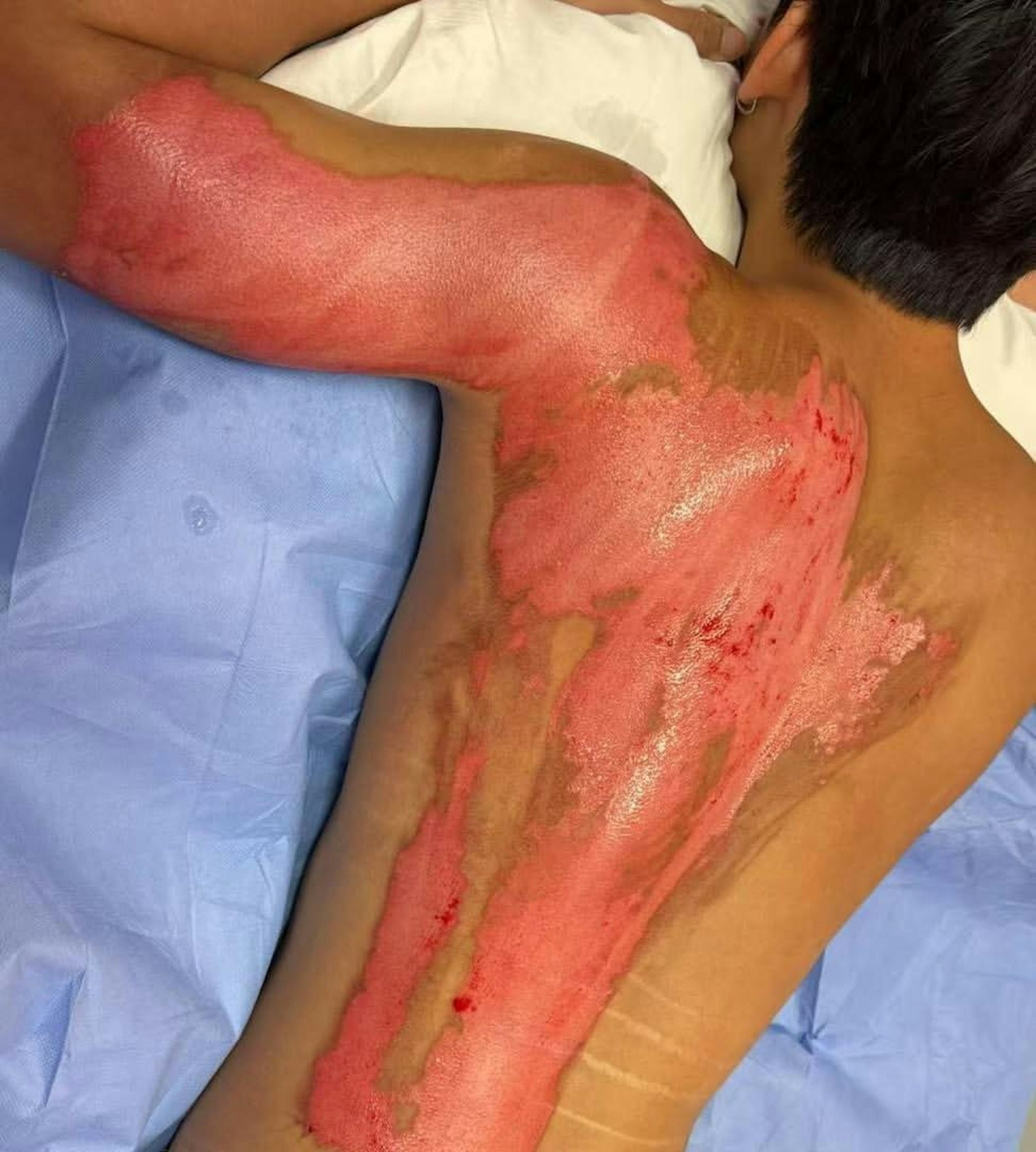 + O, P6 k* \3 o( U6 B( Z* D8 n( e* owww2.tvboxnow.com從家人上載至社交媒體相片可見,受傷19歲青年背部一半被燙傷,左手手臂背後也傷到見紅。(帖文圖片)tvb now,tvbnow,bttvb; [" U: T4 R8 \9 ? o$ I7 ?. d